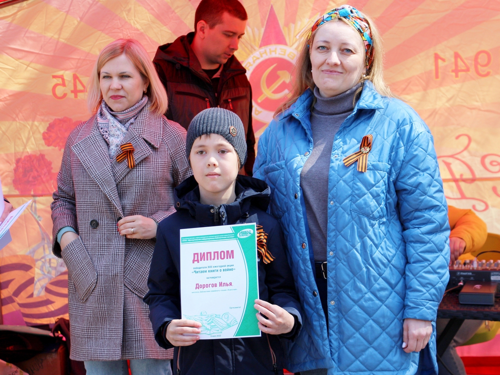 В рамках фестиваля директор Муниципальной информационно-библиотечной системы Лилия Александровна Смирнова наградила победителей акции «Читаем книги о войне». Ребята, прочитавшие в период с 20 февраля по 7 мая 2022 года больше всех книг, посвящённых Великой Отечественной войне, получили заслуженные дипломы.