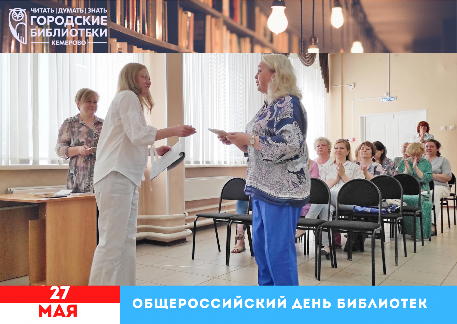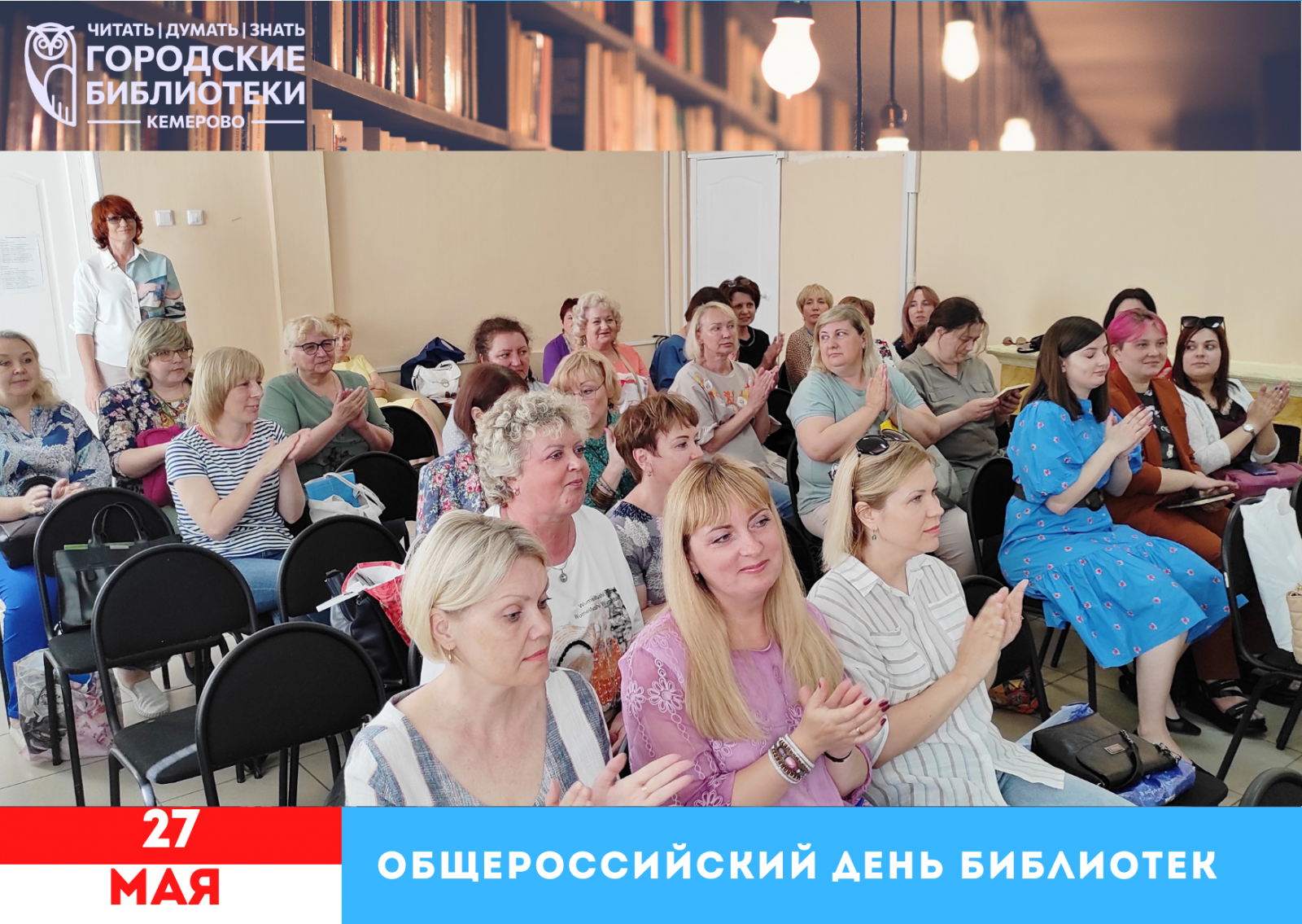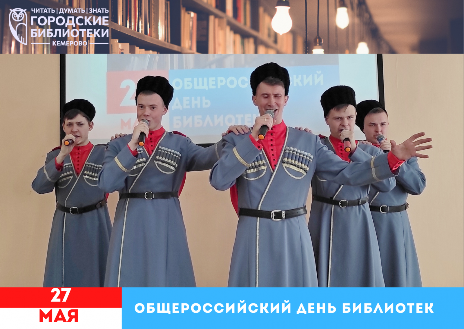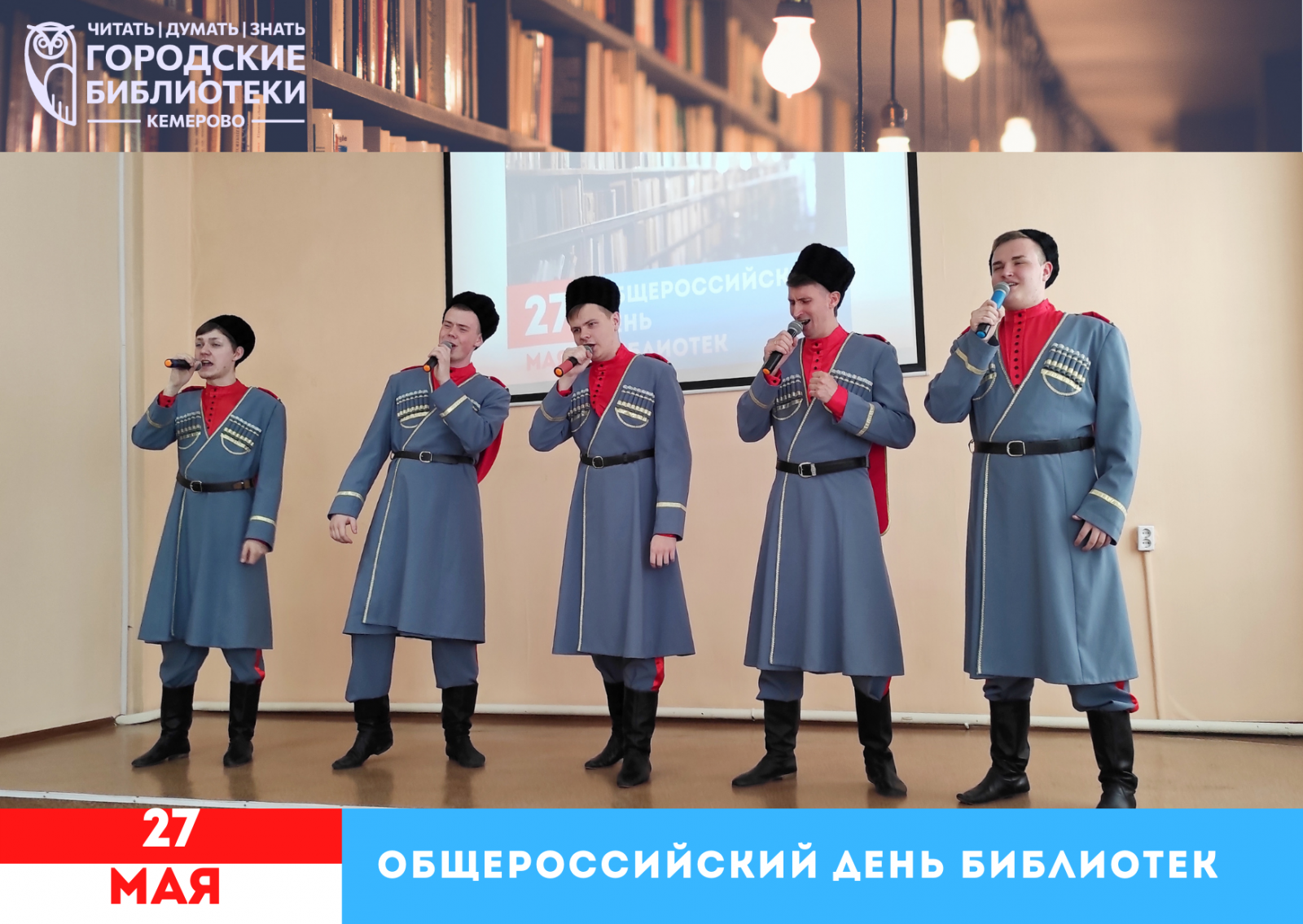 25 мая директор Муниципальной информационно-библиотечной системы Смирнова Лилия Александровна поздравила коллектив с наступающим праздником – Общероссийским днём библиотек. Также сотрудники послушали тёплое поздравление губернатора Кемеровской области – Кузбасса Цивилёва С. Е. с профессиональным праздником. Для собравшихся в актовом зале были подготовлены не только сладкие подарки, но и творческий сюрприз от мужского ансамбля народной песни «Волюшка» Кузбасского колледжа культуры и искусств им. Народного артиста СССР И. Д. Кобзона. После этого, подводя итоги, Лилия Александровна добавила от себя тёплые слова для нашего большого коллектива. От всей души поздравляем коллег!
