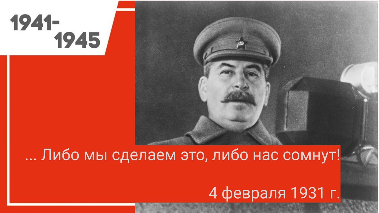 Геополитическая ситуация в те годы не оставляла сомнений – война будет. 4 февраля 1931 года Сталин сказал: «Мы отстали от передовых стран на 50-100 лет. Мы должны преодолеть это отставание за 10 лет. Либо мы сделаем это, либо нас сомнут».