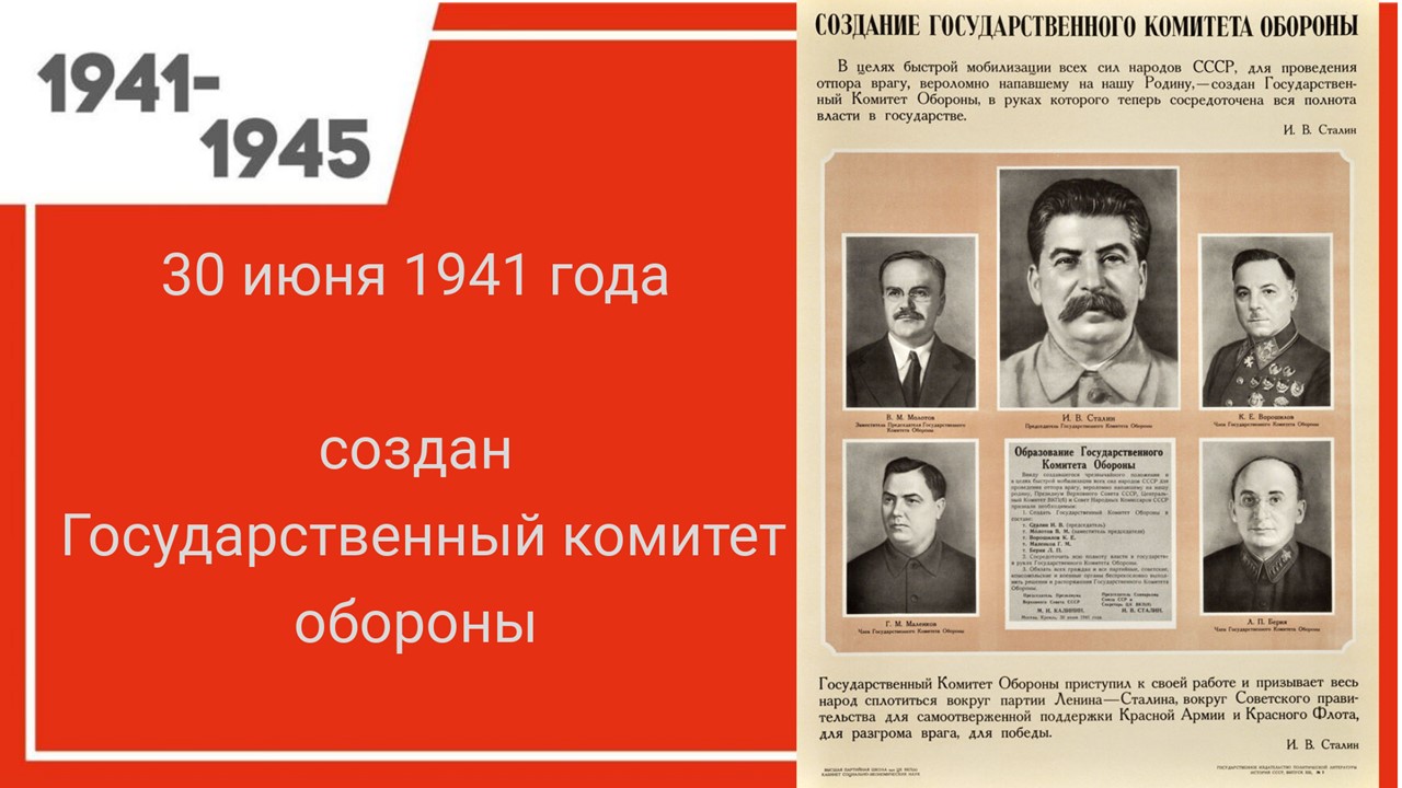 30 июня 1941 года был создан Государственный комитет обороны, который взял на себя всю полноту военной, политической и хозяйственной власти в СССР. Такое решение спасло страну. В это время требовались разумные, взвешенные, но одновременно резкие и быстрые решения.