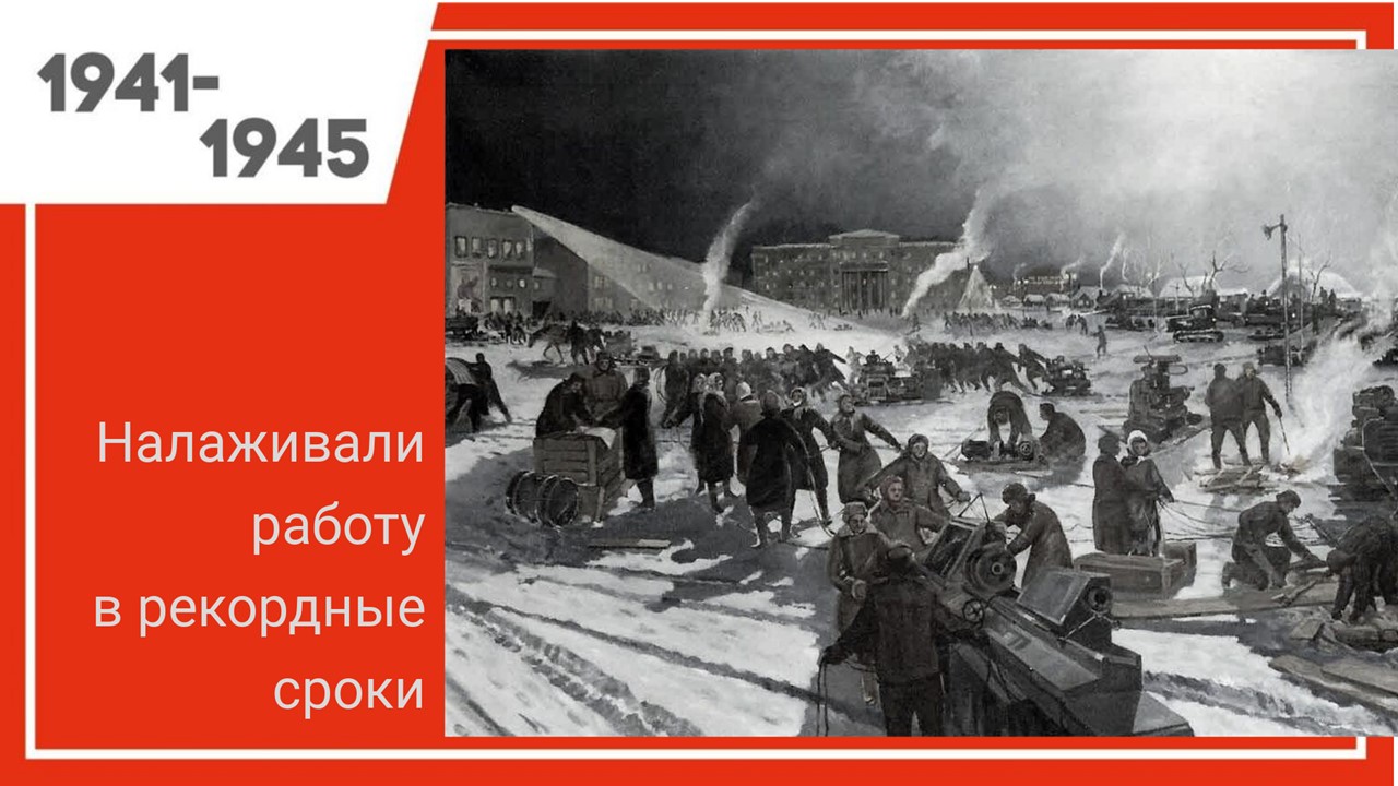 Налаживание выпуска критически важной продукции для фронта проходило в нечеловеческом темпе, в условиях недоедания, недосыпа, сибирских морозов. Люди не щадили сил, выдавая невиданные результаты добычи угля, производства металла, снарядов, танков, самолетов…