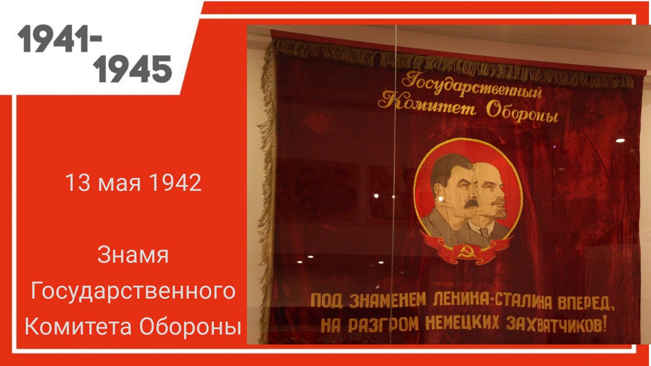 13 мая 1942 г. Государственный комитет обороны учредил переходящие Красные Знамёна Государственного Комитета Обороны (ГКО) для победителей во всесоюзном социалистическом соревновании.