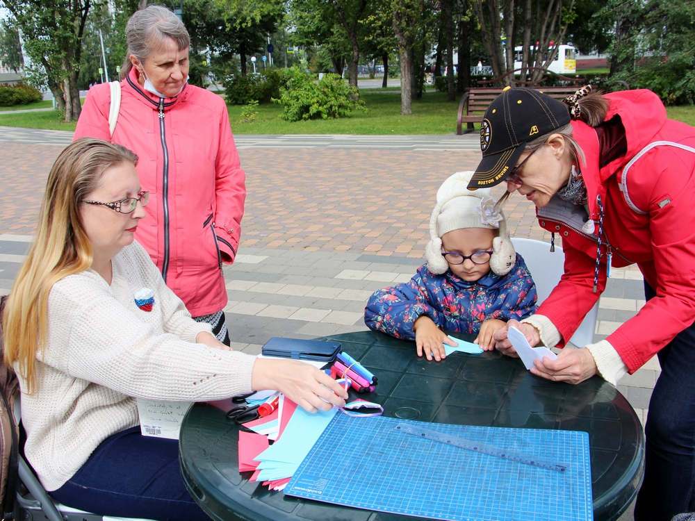 С 1994 года 22 августа в нашей стране отмечается День Государственного флага. Сегодня в Линейном парке бульвара Строителей сотрудники Муниципальной информационно-библиотечной системы провели акцию «Символ России. Прохожие знакомились с подборкой книг об истории российского триколора и отвечали на вопросы патриотической викторины. Кемеровчане всех возрастов с интересом рассматривали изображения флага в руках спортсменов, на площадях российских городов и даже в космосе и под водой, представленные на фотовыставке «Честь и слава российского флага». Занятие нашлось и для самых юных гостей акции – ребятишки с удовольствием мастерили из бумаги сердечки и раскрашивали их в цвета российского флага.