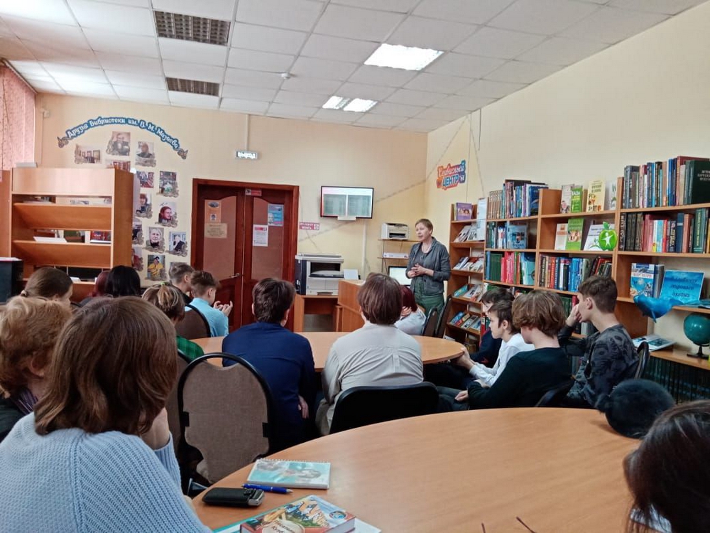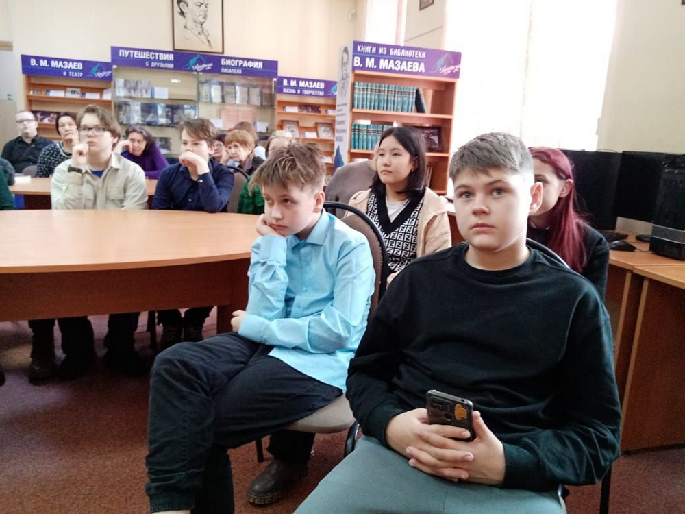 В рамках проекта «Библиошкола» в Библиотеке им. В. М. Мазаева для учащихся 7 «Б» класса средней школы №69 и участников литературного клуба «Зеленая лампа» прошёл архивный урок «Кузбасс: фронт и тыл».