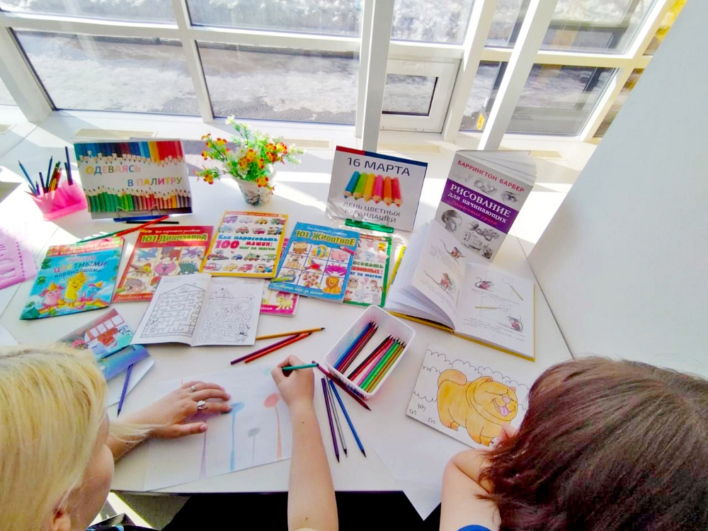 15 и 16 марта гостей модельной библиотеки «Книжная радуга» встречала яркая выставка цветного настроения «Одеваясь в палитру», посвященная празднику – Дню цветных карандашей.