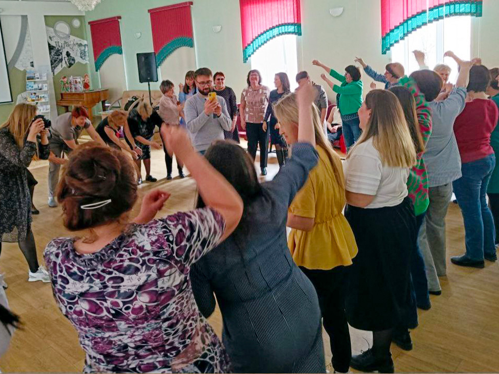 После серьезных тем всех привела в тонус Альбина Викторовна Новаковская, арт-директор центра отдыха «Притомье», которая показала какими разнообразными могут быть игры. Сотрудники кемеровских библиотек с удовольствием участвовали во всех музыкальных викторинах, подвижных играх и даже водили хоровод! Но речь шла не просто о развлечениях. Альбина Викторовна поделилась своим колоссальным опытом проведения разных игр, которые наши библиотекари, конечно, взяли на заметку.