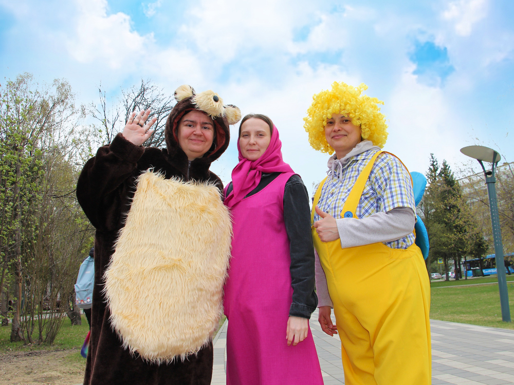 На празднике присутствовали сказочные герои Маша, Медведь и Карлсон, которые вместе с гостями праздника активно принимали участие во всех подвижных играх. Дети и взрослые соревновались в ловкости, прыгали в классики и через скакалку, играли с мячами.