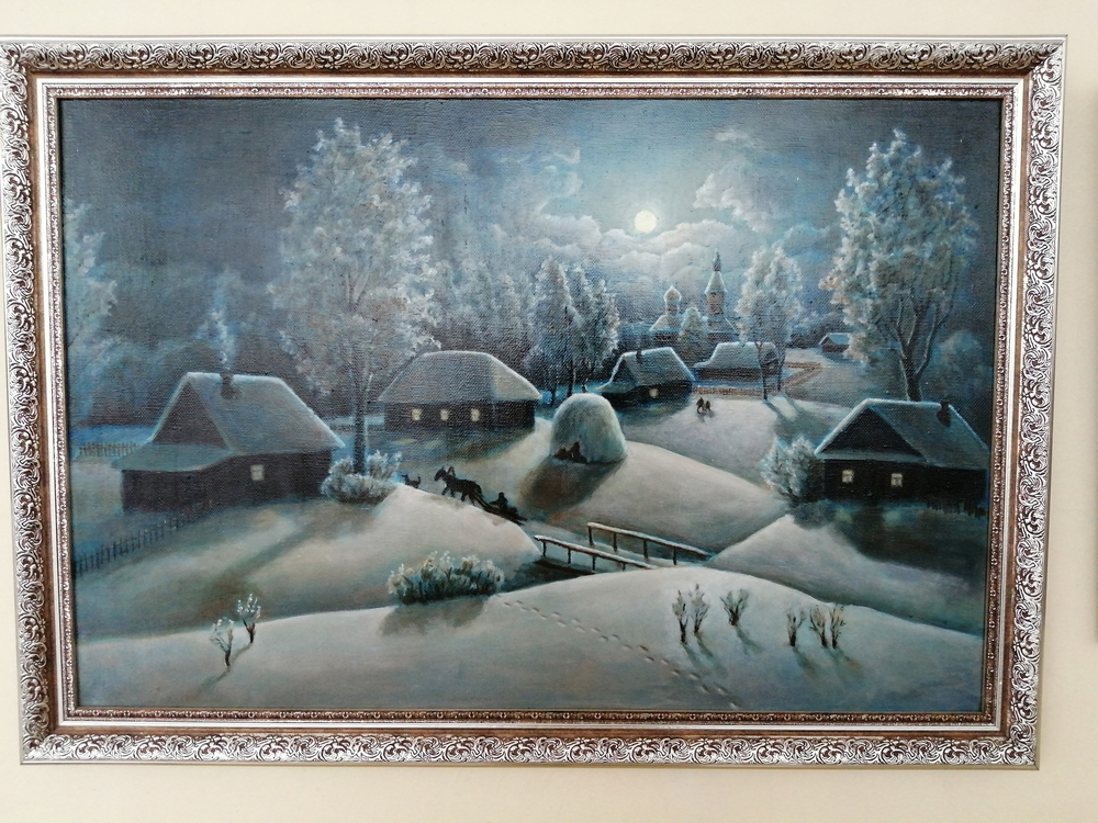 На выставке представлены вниманию зрителей: портрет его жены, бабушки, отца, в центре экспозиции находится портрет дочери художника во время своего дебюта по вокалу. Также на выставке присутствует очень красивый пейзаж с изображением зимней вечерней деревни, вглядываясь в который полностью погружаешься в атмосферу вечернего неба, домов с заснеженной крышей и узких тропинок.
