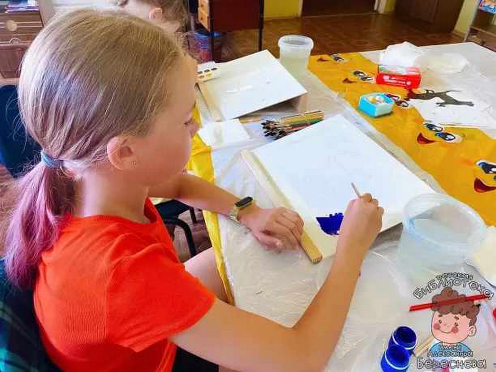 Вчера (3 августа), мы экспериментировали с шаблонами. Шаблоны, кстати, были сделаны самостоятельно библиотекарем, который ведет мастер-классы:)