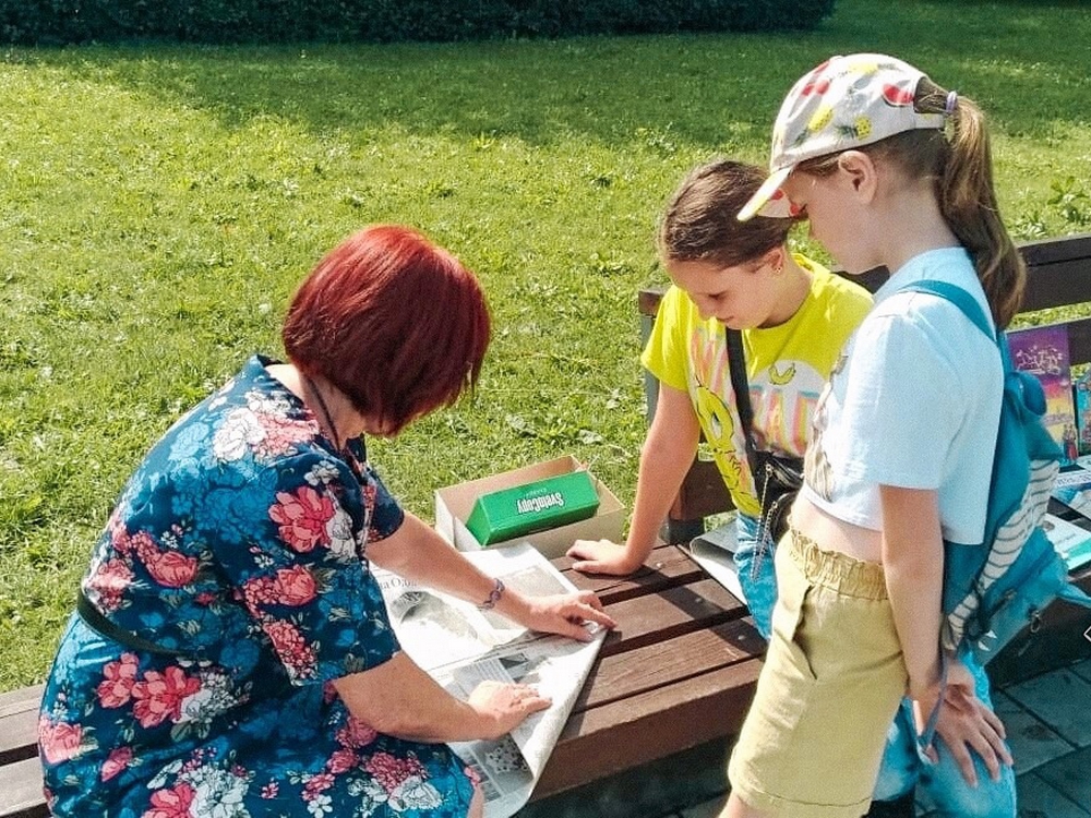 Вчера шёл дождь. Но едва выглянуло солнышко, как на бульваре Строителей заработал летний читальный зал Детской библиотеки им. А. М. Береснева и у прогуливающихся детей и взрослых появилась возможность провести время с книжкой в руках.