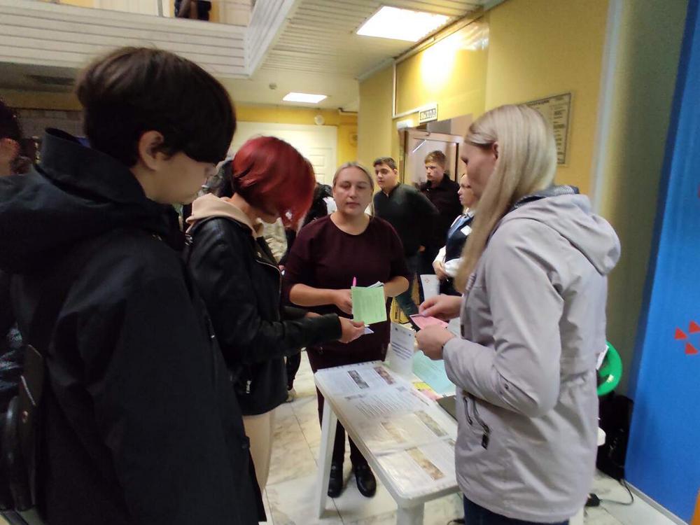 23 сентября 2023 года в Кадровом центре «Работа России» города Кемерово прошло грандиозное профориентационное мероприятие для школьников 9-11 классов – информационный день учебных заведений «Я выбираю профессию». Учащихся старших классов ждали встречи с представителями 8 высших учебных заведений, 15 техникумов и колледжей. Для школьников это реальная возможность примерить на себя конкретную специальность или определиться с выбором профессии. Сотрудники библиотеки им. Н. В. Гоголя рассказывали всем желающим о профессии библиотекаря, а также знакомили с рядом услуг, предоставляемых библиотекой, консультировали учащихся по вопросам записи в библиотеку и в Президентскую библиотеку, работе с цифровым ресурсом «РУКОНТ» и порталом «Госуслуги».