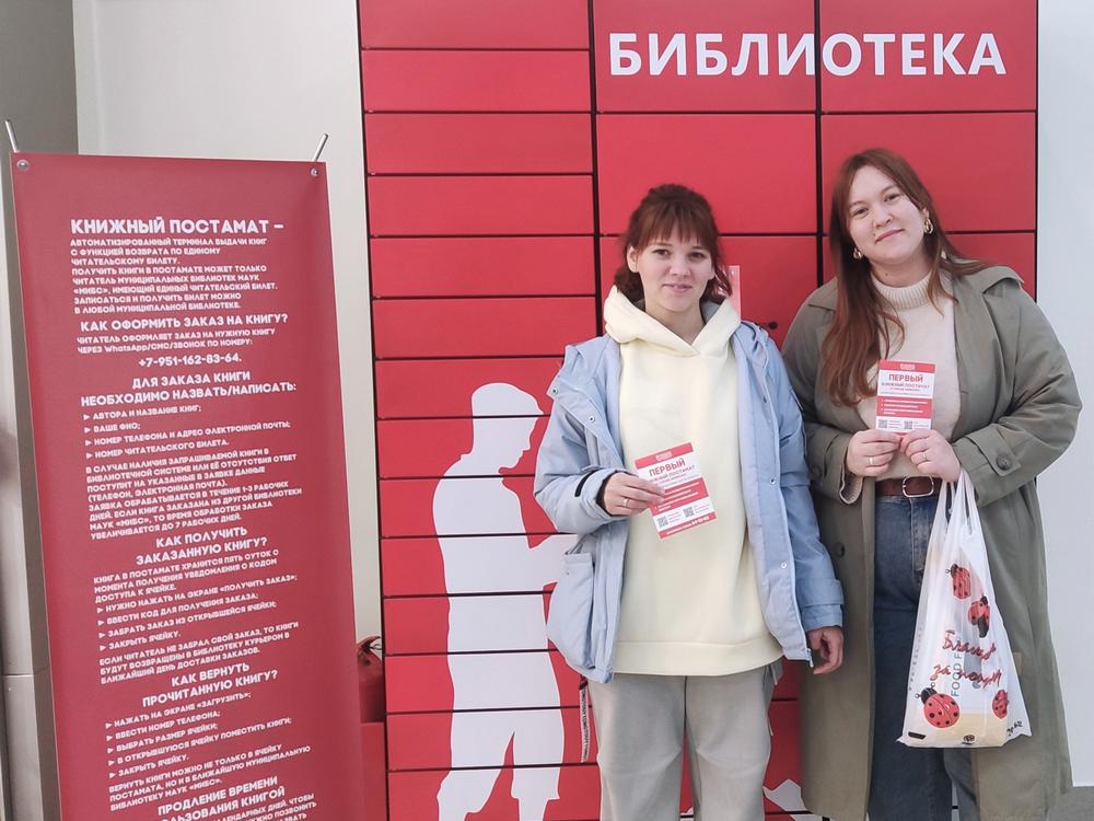 10 октября перед проведением акции сотрудник библиотеки им.Г.Е.Юрова встретила посетителей ТРЦ «Радуга» при входе в здание и раздала флаеры с инструкцией пользования постаматом и пригласила кемеровчан стать участниками акции.