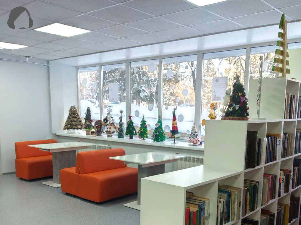 Просторный зал, полный света, где появилась зона отдыха со стильной лаконичной мебелью. Мы заменили окна, смонтировали новое освещение, разместили на входе в зал минималистичные столики с яркими мягкими диванчиками и оригинальными стульями футуристического дизайна. Теперь вы сможете взять книгу или журнал и расположиться за ними. Это настоящее литературное кафе! А ещё это пространство станет отличной локацией для фото и просто местом проведения досуга и приятного общения.