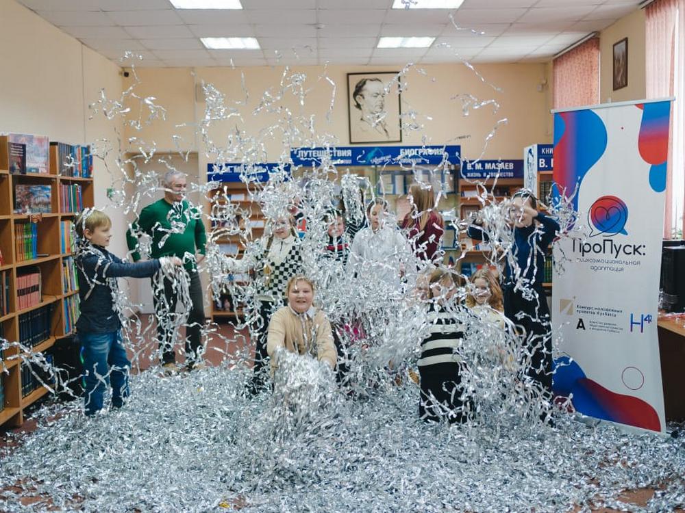 В рамках проекта «ПроПуск: психоэмоциональная адаптация», который представляет собой комплекс мероприятий, снижающих бытовое напряжение молодых семей, воспитывающих детей, столкнувшихся с мобилизацией близкого, 19 декабря 2023 года в библиотеке им. В. М. Мазаева прошло праздничное шоу «Новогодние хлопоты». Для детей были организованы мастер-классы, например, «Самолётик счастья» – ребятам было предложено создать своими руками бумажный самолёт и написать на нем, как они понимают слово «счастье». Каждый ребёнок записал свои самые любимые и счастливые моменты из жизни и с лёгкостью запустил самолёт в долгое путешествие по стране «Детство». Дети активно принимали участие в других подвижных играх, но самым главным событием новогоднего шоу стала «Бумажная дискотека». Пока ребята веселились и загадывали желания на Новый год, с родителями прошла лекция-практика с ведущим психологом города Кемерово Зариповым Артёмом Акремовичем, на тему «Тревожность и страхи», было задано много вопросов, ответы на которые так сложно найти в это нелегкое время.
