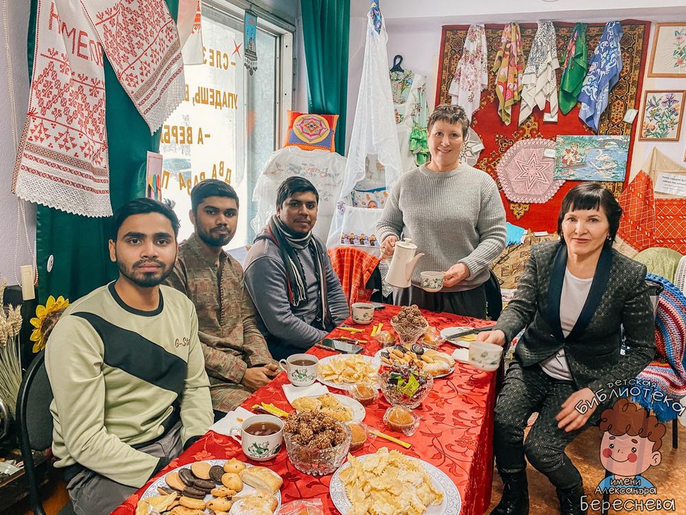 Чаепитие – это ключ к взаимопониманию. Через этот душевный процесс можно запросто «общаться» с людьми разной культуры. Так, 15 декабря праздновали День чая. Национальная комната татарского быта «Ак калфак» радушно принимала гостей из народной республики Бангладеш, Йемена и Абхазии. Ребята познакомились с татарской культурой и долго беседовали за чашечкой чая. И конечно, наши гости не могли от нас уйти без знакомства со всей Детской библиотекой им. А. М. Береснева. Русские предметы быта очень их заинтересовали. Особенно музыкальные инструменты! Они даже исполнили нам песню на родном языке. Весело и интересно завершилась рабочая неделя для библиотекарей. Мы всегда рады видеть в гостях всех! А ребятам желаем хорошей учебы (ведь они студенты), теплой зимы в Кузбассе и ярких знакомств!