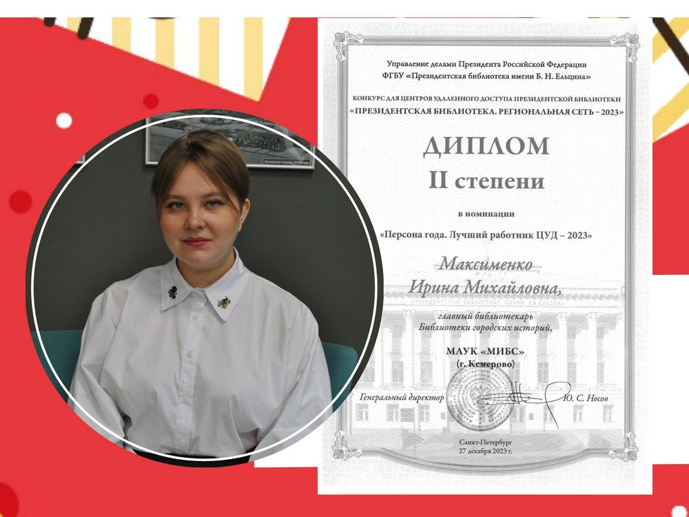 В номинации «Персона года. Лучший наставник ЦУД – 2023» обладателем диплома 2 степени стала Максименко Ирина Михайловна – главный библиотекарь Библиотеки городских историй.