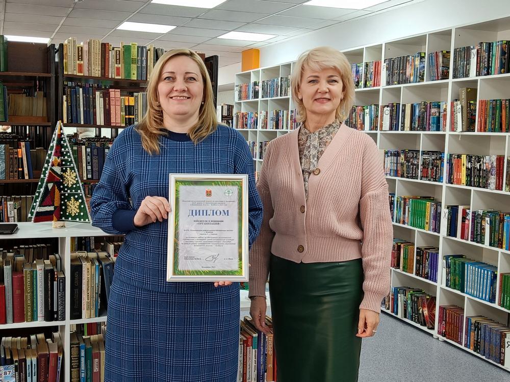 18 января 2024 года заведующий отделом культуры Управления культуры, спорта и молодежной политики администрации города Кемерово Татьяна Николаевна Гурина вручила диплом победителя в номинации «Организация» директору МАУК «МИБС» Лилии Александровне Смирновой за подписью министра природных ресурсов и экологии Кузбасса Олега Валериевича Ивлева.