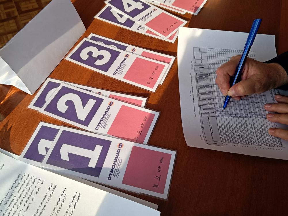 Участники выходили к микрофону, доставали из конверта книгу, открывали на нужной странице, и зачитывали фрагменты произведений выдающихся мастеров художественного слова: Пушкина и Бунина, Бондарева и Бакланова, Приставкина, Айтматова, Алексина, Ахматовой и многих других.