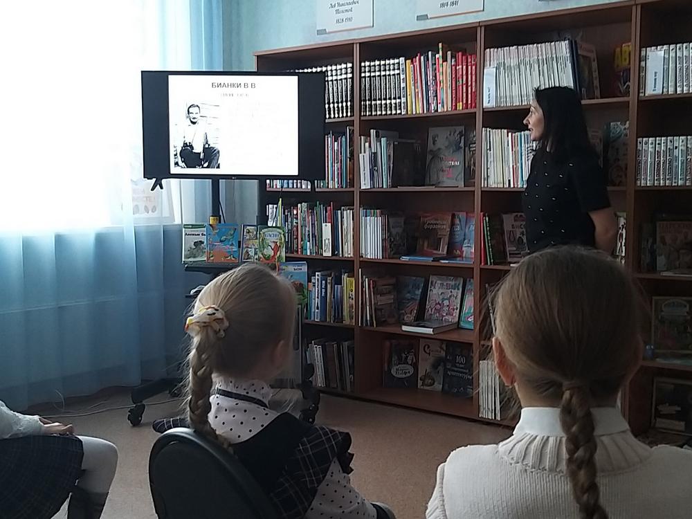 К 130-летию В. В. Бианки и к 255-летию И. А. Крылова для учащихся МБОУ «СОШ №97» библиотекарь детской библиотеки «Сибирячок» провела путешествие по страницам книг «Раскроем бережно страницы».
