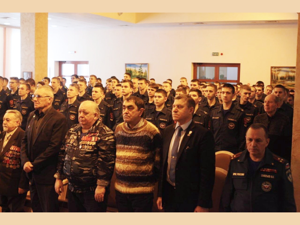 15 февраля 2024 года исполнилось 35 лет со дня вывода советских войск из Демократической Республики Афганистан. Именно в этот день, в 1989 году, последняя колонна советских войск покинула территорию Афганистана. Эта дата отмечается как День памяти россиян, исполнявших служебный долг за пределами Отечества. 16 февраля 2024 года, для воспитанников Губернаторской кадетской школы-интерната МЧС, прошел урок мужества «Виват, Шурави», в рамках которого состоялась встреча кадет с ветеранами боевых действий в Афганистане. Участники узнали о том, как в течении 10 лет, советские воины выполняли боевые задачи, о героизме и мужестве солдат и офицеров. Почётные гости мероприятия вспомнили события тех лет, боевых друзей, с которыми служили в далеком Афгане. В заключение мероприятия, собравшиеся отдали дань уважения живым и почтили память погибших минутой молчания. Мероприятие было организовано центром культурно-познавательного досуга семьи «Берегиня» совместно с библиотекой Губернаторской кадетской школы-интерната МЧС.