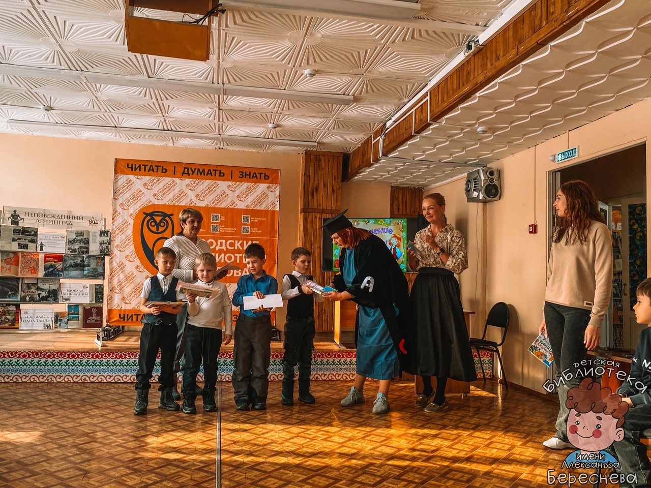 Первоклашки прощаются с Азбукой в Детской библиотеке имени А. М. Береснева.