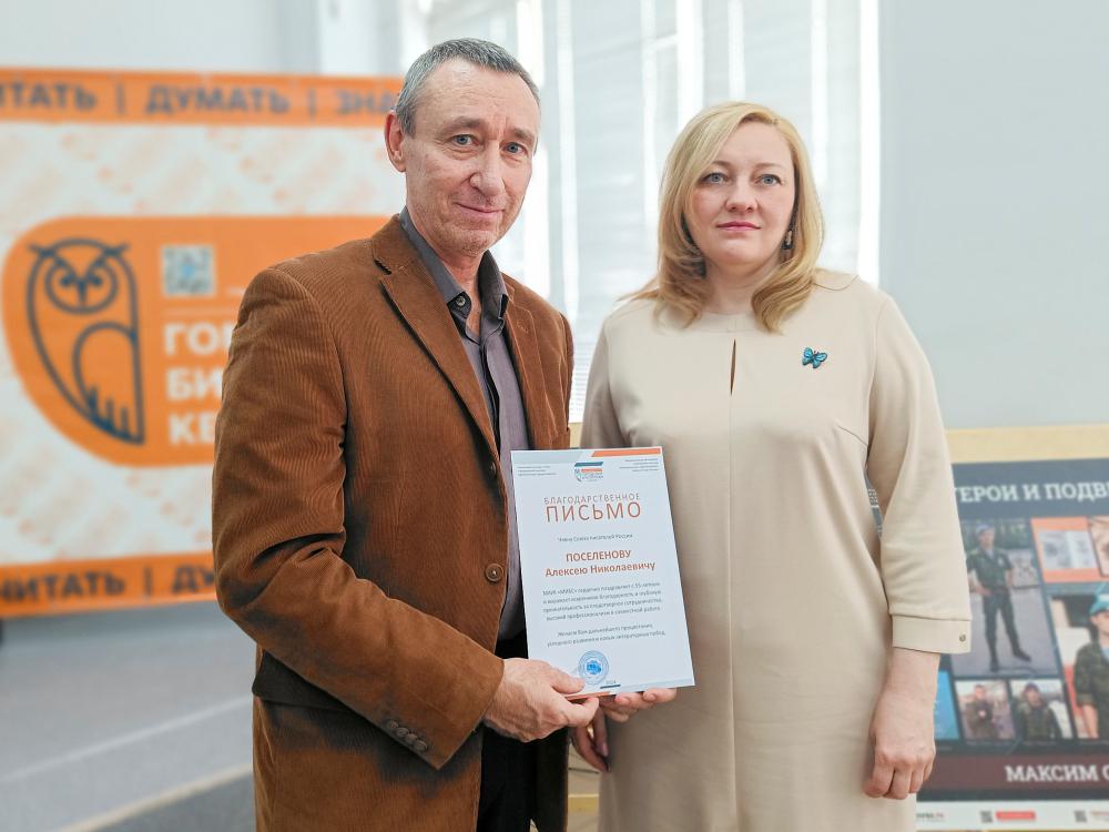 Как вы думаете, можно ли влюбиться в литературу в пятьдесят и за несколько лет стать настолько успешным прозаиком и поэтом, что одно из ваших соавторских произведений уже готовят к показу в Театре драмы Кузбасса? Алексей Поселенов доказал, что это возможно. Сегодня, 19 марта 2024 года, он пришел в Библиотеку имени Н. В. Гоголя, чтобы отметить свой 55-летний юбилей в кругу друзей и читателей. Мероприятие открыл руководитель литературной студии «Свой голос» Иосиф Куралов. Он рассказал, что Алексей Николаевич серьезно увлекся литературным творчеством после выхода на пенсию из МВД. Для совершенствования врожденного таланта окончил литературные курсы «Мастер текста» и курсы по детской литературе при издательстве «Астрель СПБ». На своей странице в социальной сети ВКонтакте о себе Алексей Николаевич пишет просто и лаконично: «Я себе уже всё доказал». И это понятно, ведь за последние пять лет он достиг многого: стал членом Союза писателей России, участником литературной студии «Свой голос», ответственным секретарем альманаха «Иная среда», лауреатом и финалистом различных литературных конкурсов. Его успех заслужен, ведь он пишет хорошую русскую прозу и стихи, включая детские произведения. На юбилейной встрече звучало много поздравлений и отзывов коллег о творчестве автора. Особенно друзья отмечали его способность профессионально и деликатно рецензировать произведения участников литературной студии. «В 2022 году я пришел в студию молодым и неопытным поэтом. Мне повезло, что первым рецензентом стал именно Алексей Николаевич Поселенов. Его глубина и умение выделить главное оказали большое влияние на мое творчество. Дружба с Алексеем стала поворотным моментом моей биографии, – поделился воспоминаниями соавтор пьесы «Позывной Кузбасс», участник СВО Виталий Дорофеев. – Идея пуста, пока не попадает в руки мастера. Наша пьеса – подтверждение этому. Именно вклад и мастерство Алексея Николаевича оживили ее». Присоединилась к поздравлению юбиляра и директор Муниципальной информационно-библиотечной системы Лилия Смирнова. Она выразила благодарность Алексею Николаевичу и всем участникам студии «Свой голос» за вклад в развитие литературного сообщества, которое посещает любители поэзии и прозы. Подчеркнула, что обмен опытом на базе городских библиотек способствует развитию творчества, появлению новых ярких имен и актуальных произведений. Красной нитью по всему творчеству Алексея Николаевича проходит любовь к русской деревне и к тому, что с нею связано. Наверное, поэтому его рассказы и сравнивают с произведениями Шукшина. Русская душа и сопереживания людям – это то, что отмечают читатели и коллеги в произведениях автора. Его ещё называют знатоком человеческих душ. «Просто пришло время в жизни, когда стало нужно этим заниматься. Сегодня я не могу не писать!» – говорит о себе сам Алексей Николаевич! И мы этому очень рады! Пишите, уважаемый автор! Пишите!