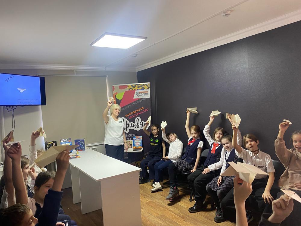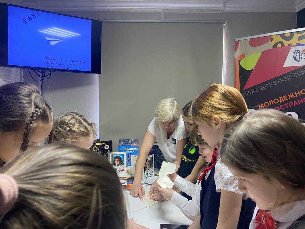 Школьники узнали, что «Астронавт» – это «звёздный моряк», что старейшему астронавту на момент старта было 77 лет, что в космосе существует алкогольное облако, что самые огромные запасы воды в Солнечной системе есть в Солнце, что для стрижки в космосе нужен пылесос, и много-много других интересных фактов. Кроме того, ребята попытались сделать несколько упражнений из комплекса подготовки космонавтов и попробовали свои силы в любимом развлечение Юрия Гагарина – делали бумажные самолетики.