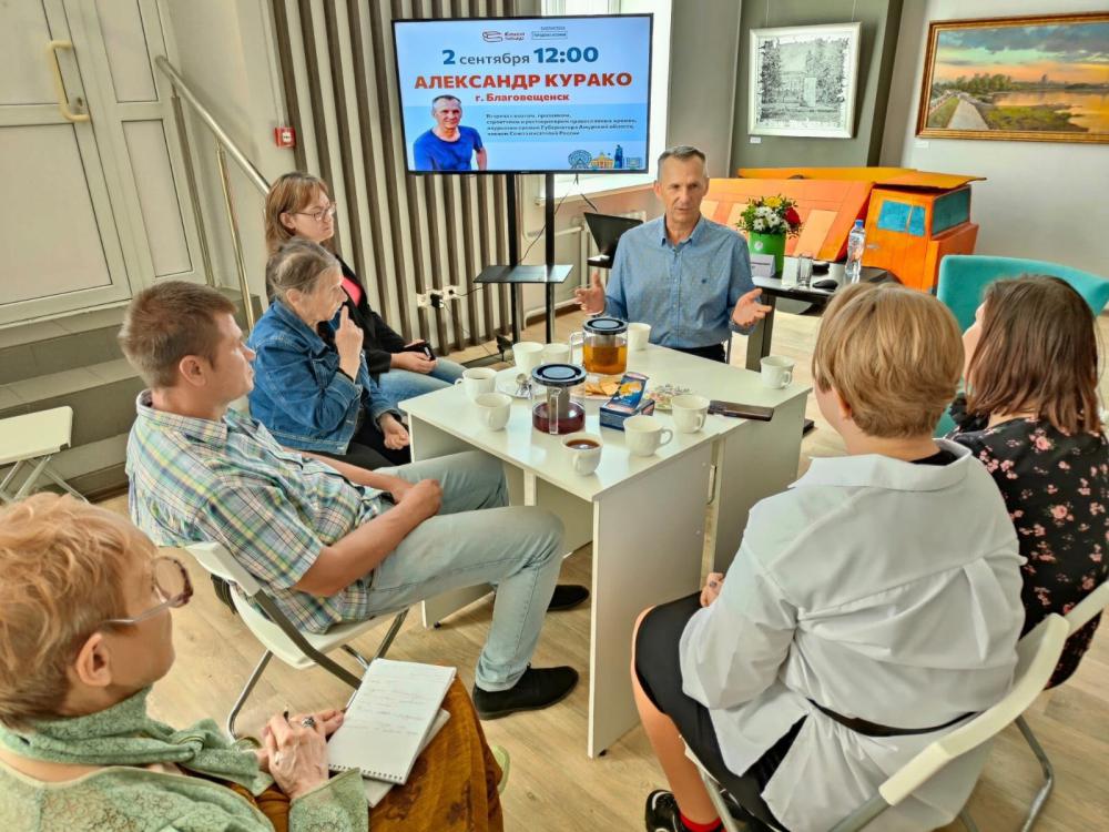 В сентябре прошлого года в рамках фестиваля «Книжная площадь» Библиотеку городских историй посетил писатель из города Благовещенска – Александр Курако. Александр Леонидович презентовал свои детские повести и рассказы, сборник стихов.