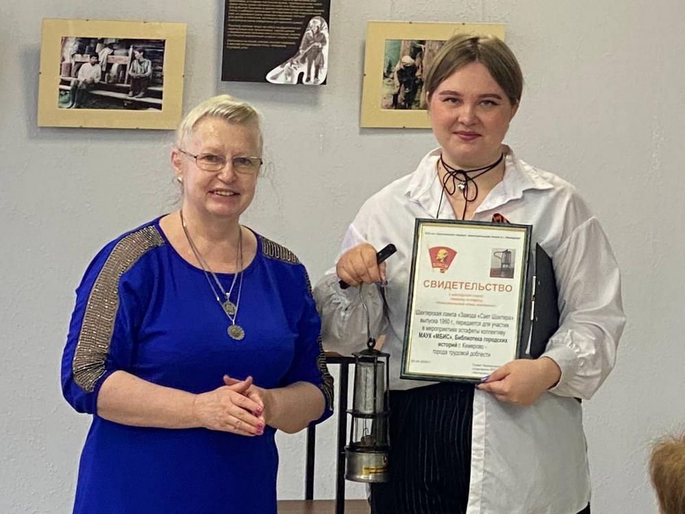 С приветственным словом выступила и вручила свидетельство и переходящий символ Эстафеты – Шахтерскую лампу «Завода «Свет шахтера» выпуска 1960 года координатор по Центральному району Регионального движения «Ветераны Комсомола» Людмила Александровна Разуваева.