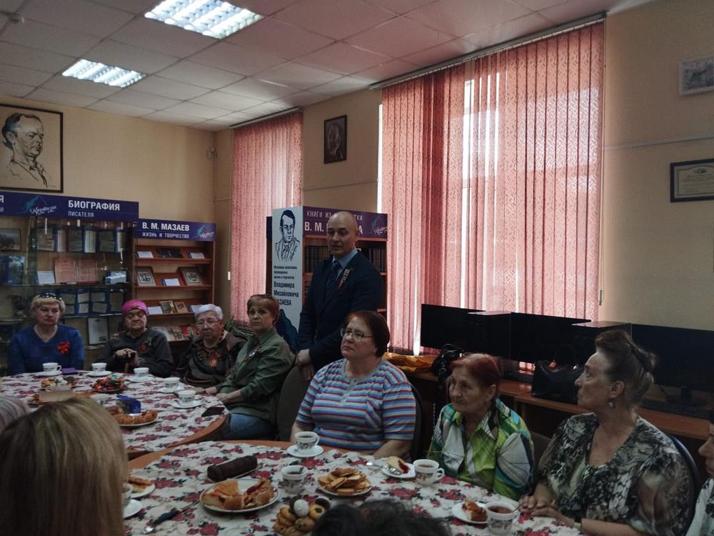 В рамках Года семьи и в преддверии Дня Великой Победы, для участников клуба «А у нас во дворе», ЦРН «Встреча» и «Оптимист», читателей, в Библиотеке им. В. М. Мазаева 8 мая прошел вечер памяти «От поколения к поколению, от сердца к сердцу». В адрес собравшихся гостей вечера прозвучали теплые слова поздравления от Заместителя председателя Совета ветеранов Центрального района Кричильской Татьяны Павловны и Депутата Кемеровского городского Совета народных депутатов VII созыва – Кулебакина Евгения Владимировича. Евгений Владимирович вручил присутствующим ветеранам ВОВ медали «Дети войны» и памятные сувениры. Почтили память павших минутой молчания. Сотрудники библиотеки провели мини-викторину «Угадай фильм о войне» используя отрывки военных песен, ветераны разгадывали ребусы и загадки, прозвучали стихи собственного сочинения, воспоминания о ветеранов, очевидцев тех страшных событий, а затем пели всем знакомые песни военных лет и задорные частушки под аккомпанемент Владимира Викторовича Суполкина. Вечная слава героям! С праздником, дорогие ветераны!