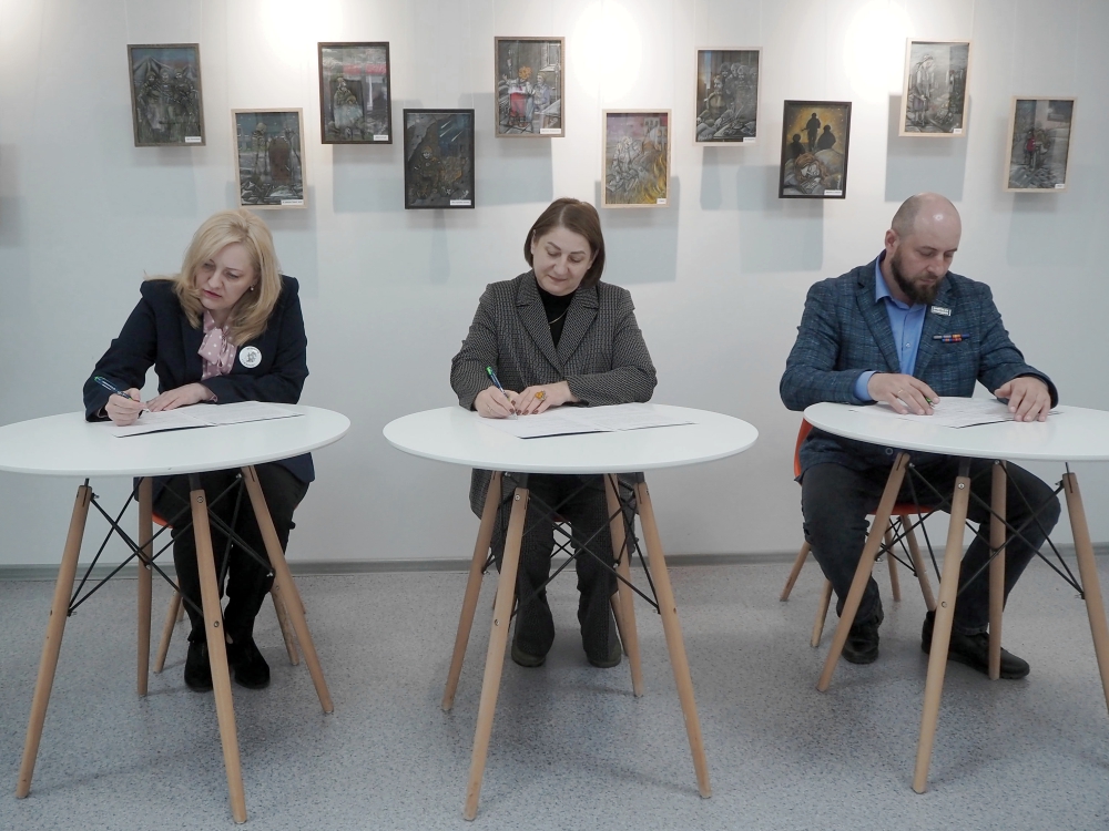22 мая 2024 года в Библиотеке им. Н. В. Гоголя (МАУК «МИБС» г. Кемерово) состоялась встреча руководителя филиала Государственного фонда «Защитники Отечества» по Кемеровской области – Кузбассу Л. В. Конышевой, председателя РОО Кемеровской области-Кузбасса «Кузбасский союз ветеранов специальной военной операции» А. Н. Савина и директора МАУК «Муниципальная информационно-библиотечная система» г. Кемерово Л. А. Смирновой. В ходе встречи между организациями было подписано трёхстороннее «Соглашение о сотрудничестве и взаимодействии в сфере социокультурных инициатив». Соглашение зафиксировало стратегические основы партнёрского взаимодействия в целях социокультурной интеграции ветеранов СВО. Присутствующих приветствовала директор МАУК «МИБС» г. Кемерово Лилия Александровна Смирнова. Она подчеркнула, что поддержка творческих проектов, связанных с адаптацией и интеграцией ветеранов СВО – одно из приоритетных направлений работы учреждения. Городские библиотеки обеспечивают на своих площадках ресурсную базу для реализации гражданских инициатив и выступают их полноценными партнерами. В ходе встречи были представлены результаты работы уже реализуемого проекта «Позывной «ТВОРЕЦ»» за период с марта 2024 года. Информацию о подготовленных грантовых заявках и ближайших планах представил художественный руководитель проекта – ветеран СВО, член Союза писателей России, заместитель председателя Кузбасского Союза ветеранов СВО Виталий Валерьевич Дорофеев. Также присутствующим был продемонстрирован видеоролик «Я вернулся», посвященный Мемориалу Воину-освободителю в Кемерово и который создан при поддержке и содействии участников Соглашения. Лариса Владимировна Конышева рассказала о реализации общественных проектов Государственного фонда «Защитники Отечества» и отметила, что именно в Кузбассе создаются уникальные проекты и инициативы, которые затем становятся примером для других регионов страны. Алексей Николаевич Савин подчеркнул востребованность и необходимость проектов, которые связаны с творческой самореализацией ветеранов СВО. Подобные инициативы оказывают самое положительное влияние на качество и эффективность адаптации наших бойцов, вернувшихся из зоны СВО. Виталий Валерьевич Дорофеев представил выставку картин «О русской доблести и славе». Автор работ, Мария Циколина – художница из города Рыбинска. За каждым сюжетом – реальная история, реальный человек, судьба. «МелОк мощностью с «Солнцепёк», – говорят бойцы, которые хранят на передовой её рисунки как обереги. В Библиотеке им. Н. В. Гоголя на пр. Ленина, 135 выставка будет экспонироваться до 5 июня. Проект «Позывной «ТВОРЕЦ»» объединяет неравнодушных и активных профессионалов, которые своей деятельностью каждый день приближают нашу Победу. Подписание Соглашения – это консолидация возможностей для поддержки и развития инициатив ветеранов СВО, привлечения новых партнёров для успешной реализации социокультурных проектов.
