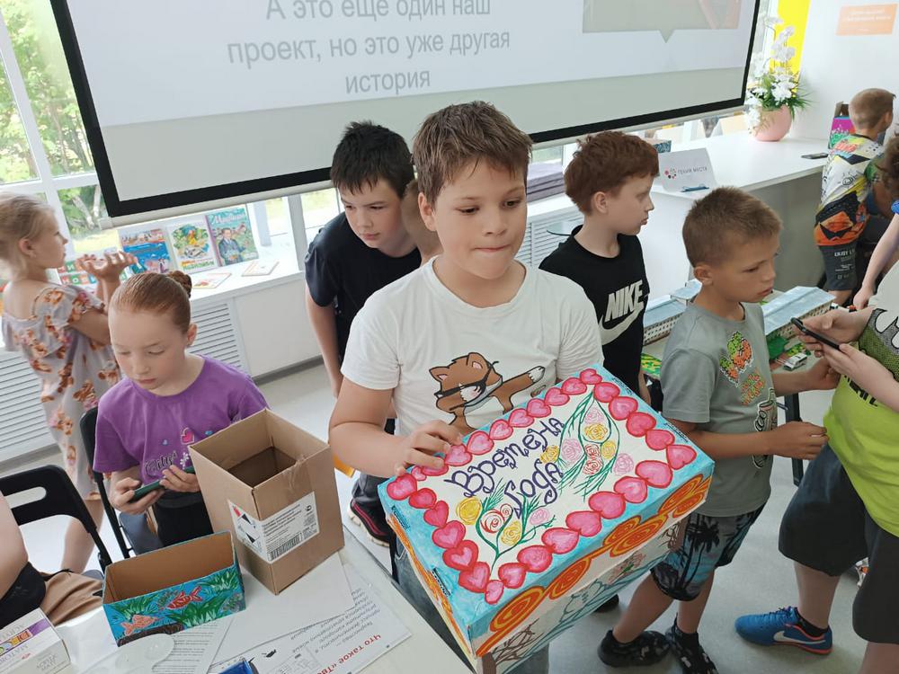 13 июня в библиотеке семейного чтения «Книжная радуга» (ул. Новогодняя, 2) для ребят, посещающих летний лагерь в школе № 70, в рамках проекта «Гений места» состоялся перформанс «Я и творчество. Как выразить себя через творчество», который подготовили и провели наши добрые друзья и партнеры из Кедровского дома-интерната: социальный педагог Евгения Викторовна Морозова и получатели социальных услуг Алена Козмарева и Галина Райковская.