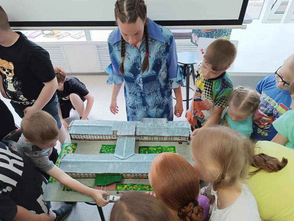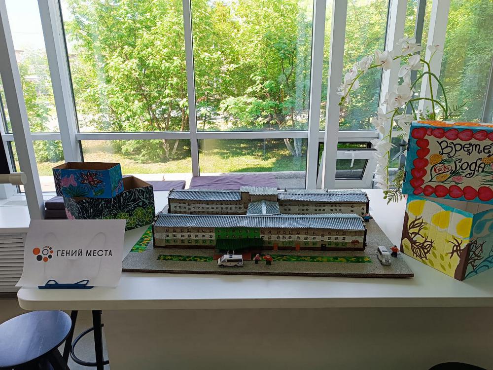 Галина Райковская показала макет Кедровского интерната, который она вместе с Евгенией Викторовной, подготовили для демонстрации, также изготовленного из картонных коробок.