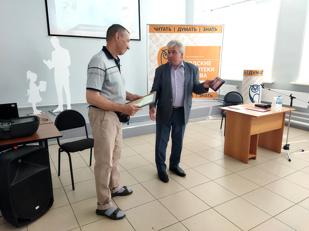 Юрий Скворцов и Иосиф Куралов вручили Алексею Поселенову общественные награды.