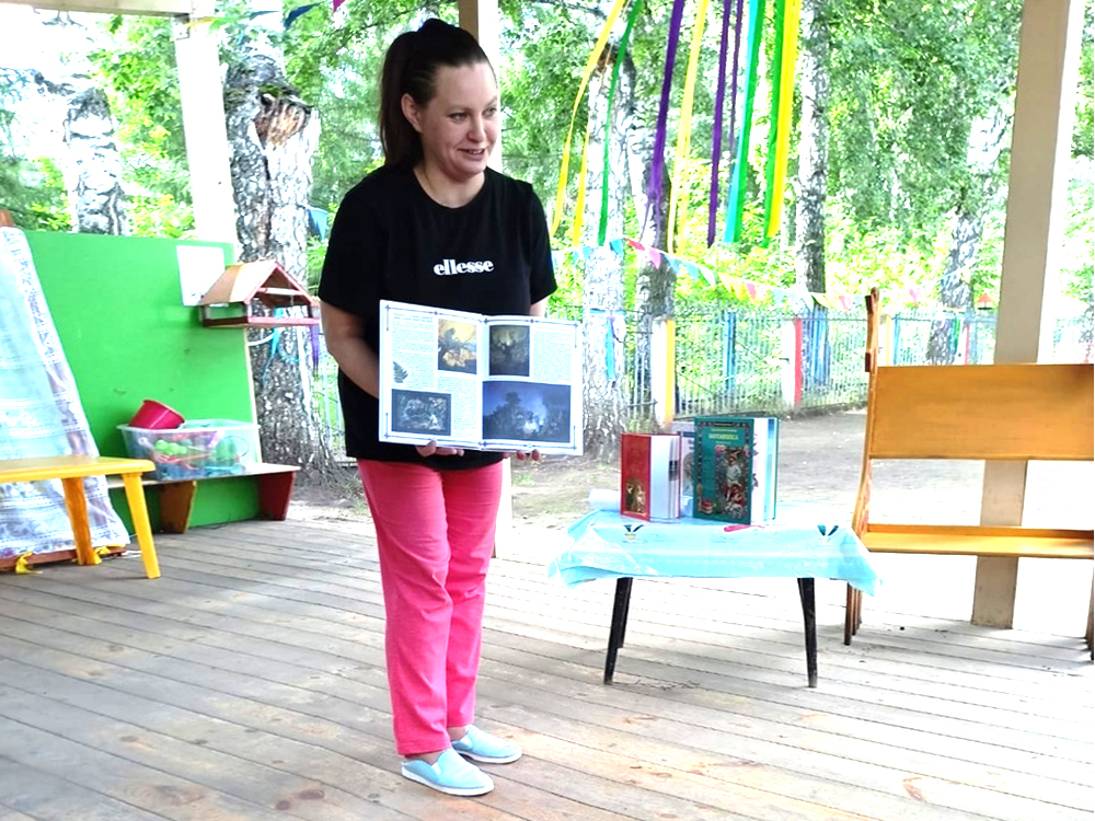 Сотрудник рассказала о том, что на Иванов день принято прыгать через костер и собирать лекарственные травы. А так же, ребята узнали легенду про мифический цветок папоротника, открывающий его владельцу клады и тайны мира, отгадали загадки, приняли участие в играх «Голоса эльфов», «Назови цветок».