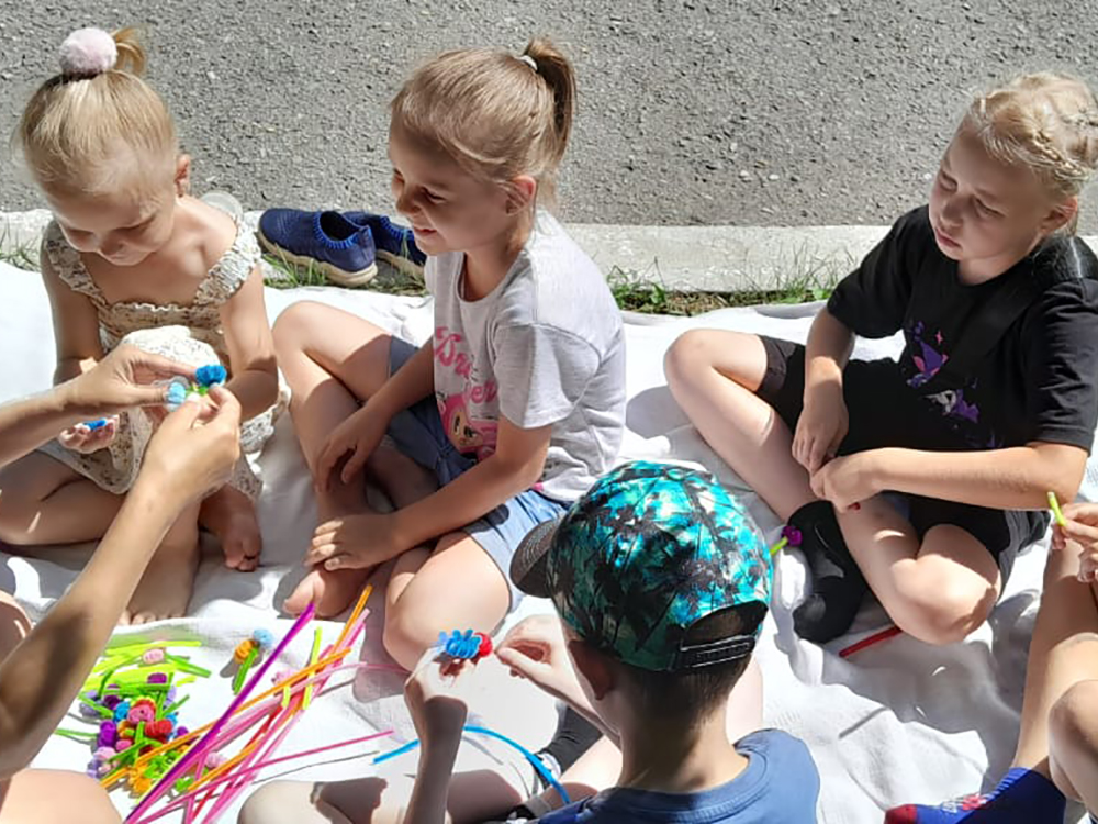 А в завершении мероприятия дети совместно сплели венок, но, так как мы за сохранение экологии, цветы были из синильной проволоки