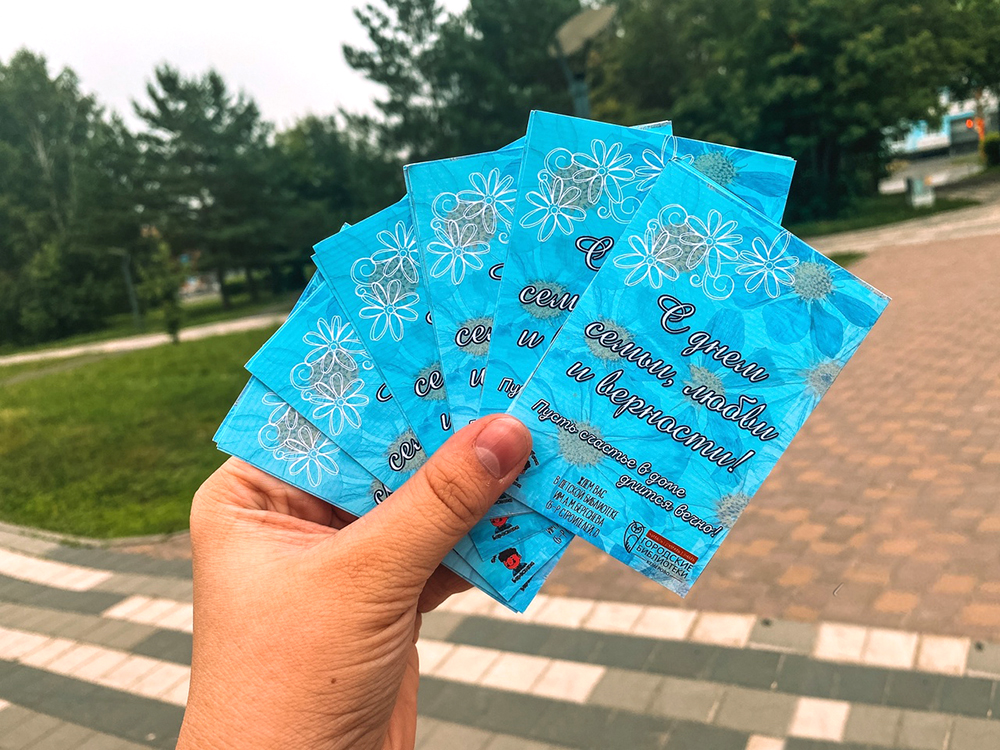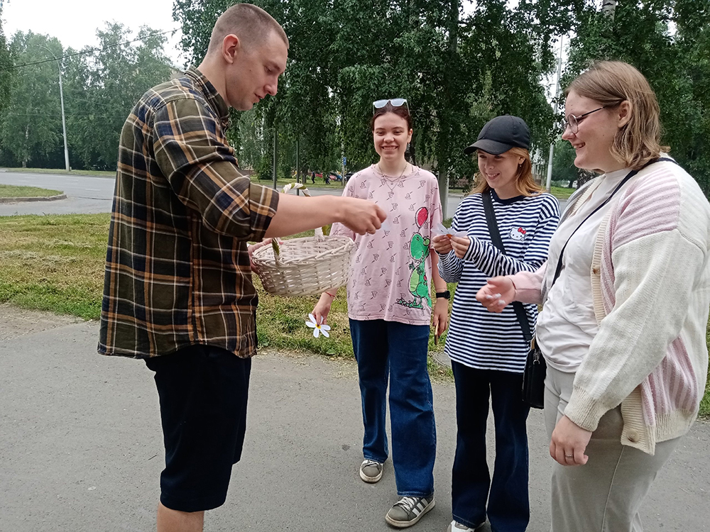 8 июля 2024 года с 11:00 до 12:00 изумлённые горожане и гости Кемерова получали необычный подарок – бумажную ромашку. Так читатели и сотрудники библиотек им. А. М. Береснева и «Инфосфера» поучаствовали в культурно-просветительской акции «Ромашковый флешмоб». Акция приурочена к замечательному русскому празднику – Дню семьи, любви и верности, отмечаемому по всей стране 8 июля. Начиная с пятницы, каждый пожелавший посетитель библиотеки мог на лепестках самого летнего цветочка написать собственные определения словам «любовь», «семья» и «верность». А также пожелания, которые маленькие и большие читатели библиотек им. А. М. Береснева и «Инфосфера» адресовали кемеровчанам в восьмой день июля в День семьи, любви и верности.