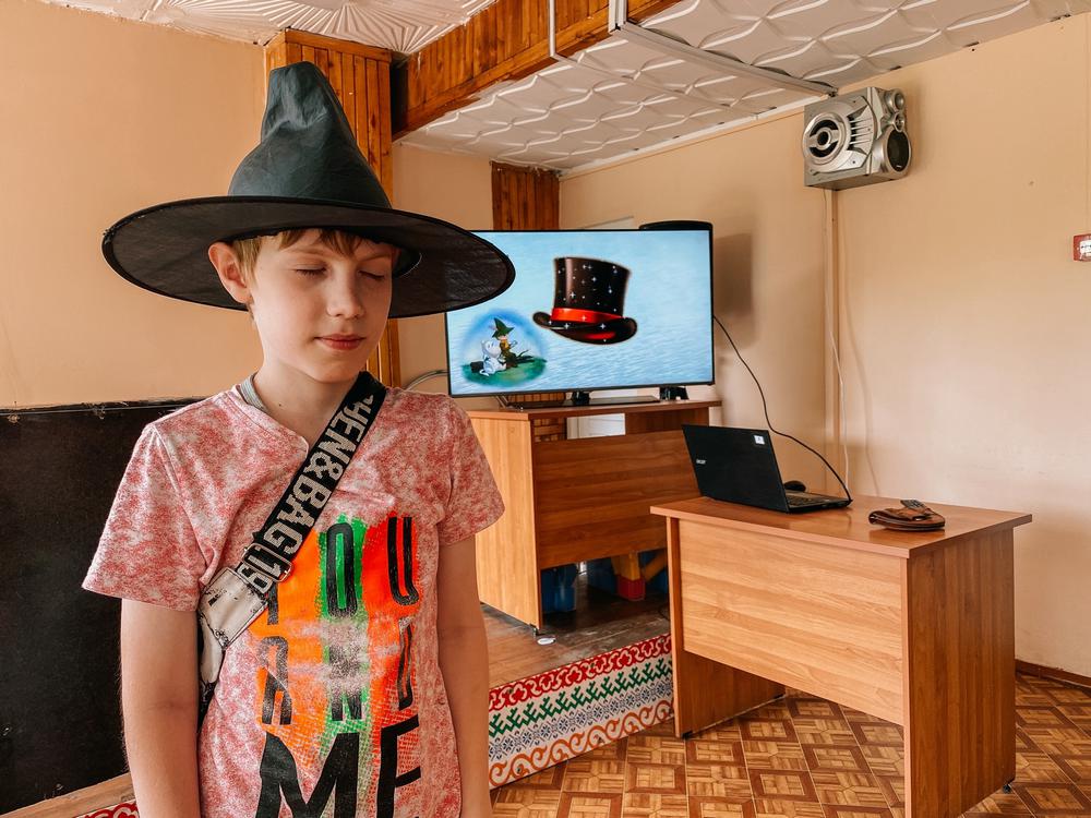 Шляпа волшебника перенесла их в Муми-дол. Ребята познакомились с его обитателями, исследовали дом муми-троллей и их друзей. Ведь в книгах Туве Янссон повествуется о целой семье муми-троллей – Муми-семействе. Дети наведались в «комнату для всякой всячины». В фотоателье Муми-папы они сделали фотопортреты героев сказок Туве Янссон.