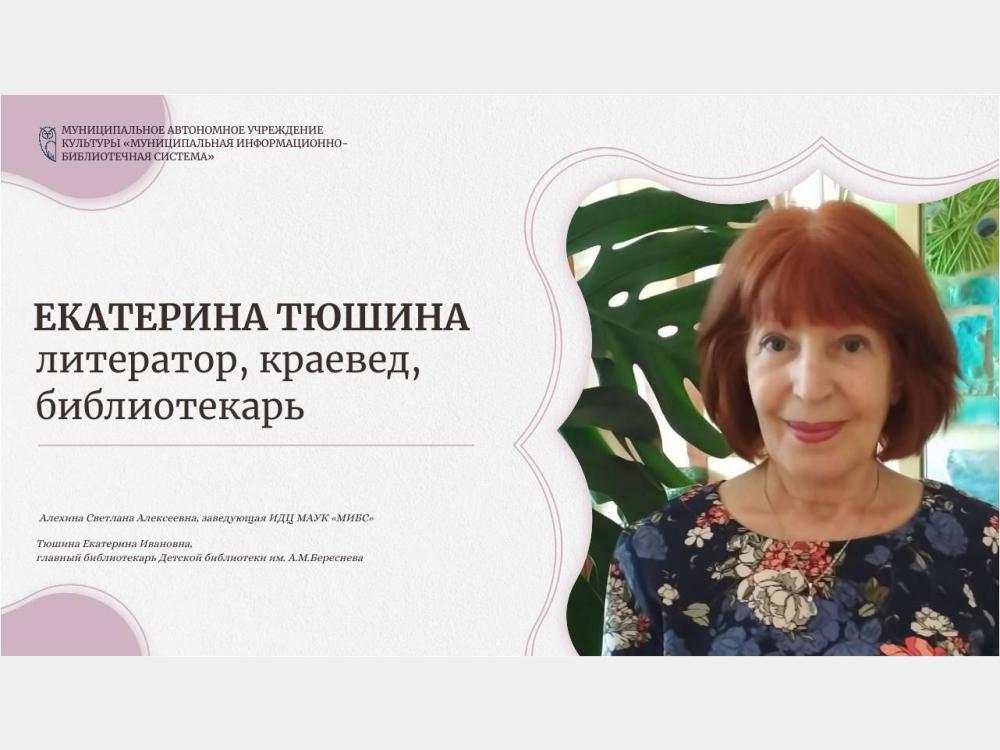 Работа творческой группы МАУК «МИБС», посвященная творчеству писателя краеведа Екатерины Тюшиной была отмечена дипломом главы города. МАУК «МИБС» принимает участие в конкурсе уже четвертый раз. В этом году на конкурс поступило 38 заявок в трех номинациях «Архивные кадры: от прошлого к настоящему», «Историко-культурная летопись родного города», «Оживший архив». Градообразующие предприятия, организации и учреждения, кемеровчане разных профессий и возрастов представили свои творческие работы – видеоролики и презентации, посвящённые истории столицы Кузбасса и жителям, внёсшим вклад в становление и развитие города. В ближайшее время все работы призёров и победителей будут направлены в Виртуальный музей города Кемерово https://vm.kemerovo.ru/. Все желающие могут пользоваться достоверной информацией для того, чтобы узнавать о своих знаменитых земляках, о предприятиях города, о важных событиях в жизни Кемерова.