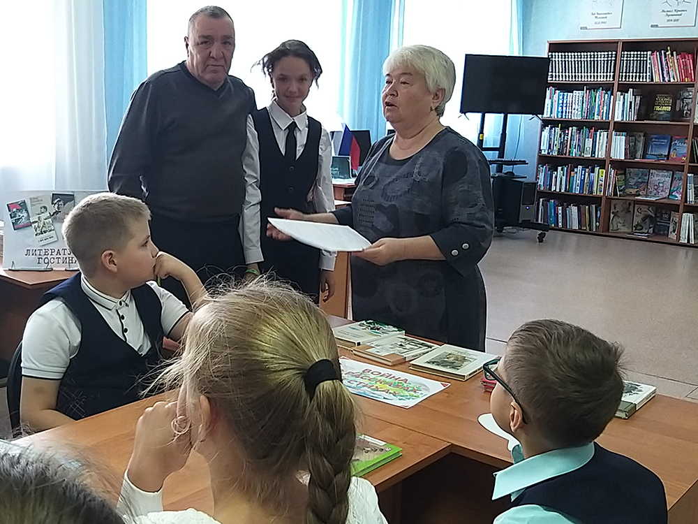 К юбилею Победы в Великой Отечественной войне 12 сентября в детской библиотеке «Сибирячок» (пр. Молодежный, 9Б) состоялось открытие литературной гостиной «Нам жить и помнить» из цикла мероприятий, приуроченных к 80-летию победы о событиях, о людях, о детях той поры, о том, как мужественно и стойко они переносили все тяготы и беды, как ковали Победу над врагом. Мероприятие началось с вручения именного «Билета участника литературной гостиной». Затем с учениками 4«а» класса школы №97 подвели итоги викторины на тему Великой Отечественной войны, задания к которой были даны ранее классным руководителем. Определили победителей, занявших 1, 2 и 3 места, которым были вручены сладкие призы. Гостями мероприятия стали родители учеников, они поздравили ребят с открытием литературной гостиной, а финалистов – с заслуженной победой. В завершение библиотекарь провела обзор литературы о войне и предложила ребятам прочитать книгу С. Алексеева «Рассказы о Великой Отечественной войне» для обсуждения на следующей встрече.
