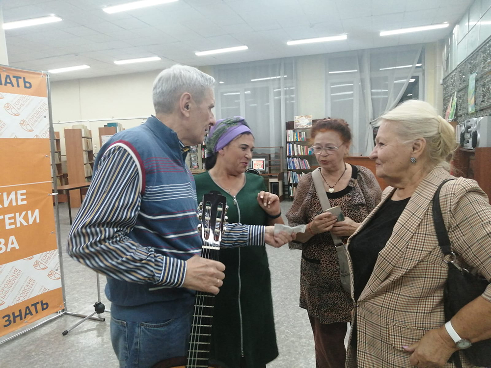 26 сентября 2024 года в Библиотеке им. Н. В. Гоголя прошла творческая встреча с кемеровским автором и исполнителем Иваном Львовичем Мазаевым. Бардовская песня никогда не пишется на заказ – это особое состояние души, состояние полета, эмоции и чувства автора. Иван Львович рассказал слушателям об авторской песне и своем творческом пути. В ходе встречи прозвучали произведения как самого Ивана Мазаева, так и произведения таких известных авторов, как Юрий Визбор и Юрий Кукин. А также всем хорошо знакомые песни из художественных фильмов, и зрители с удовольствием подпевали исполнителю. Атмосфера вечера получилась теплая и душевная, как и сами песни. Благодарим всех за участие и ждём на следующих творческих встречах.