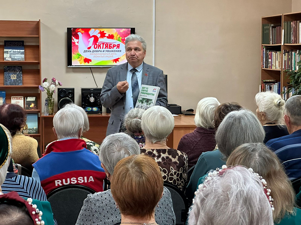 27 сентября в 15:00 в библиотеке им. И. М. Киселева (ул. В. Волошиной, 29) для старшего поколения прошел праздничный огонек «Главное душою не стареть. День добра и уважения – это замечательный повод для встречи добрых друзей, для сердечных поздравлений и пожеланий. С музыкальными подарками и поздравлениями выступили хор ветеранов «Девчата с Южного» и ансамбль русской песни «Рябинка». Поздравил всех гостей праздника и вручил подарки Юрий Петрович Скворцов, заместитель председателя Парламента Кузбасса, председатель комитета по делам ветеранов, социальной политике и здравоохранению в Парламенте Кузбасса. Юрий Петрович сказал много теплых слов и пожеланий здоровья и оптимизма всем присутствующим.
