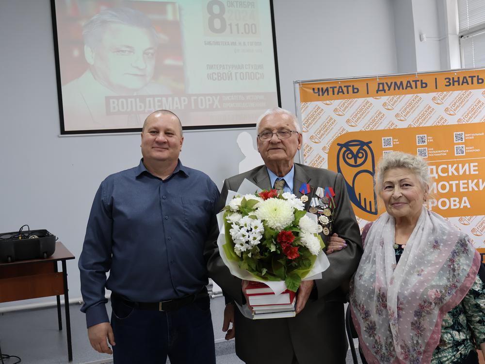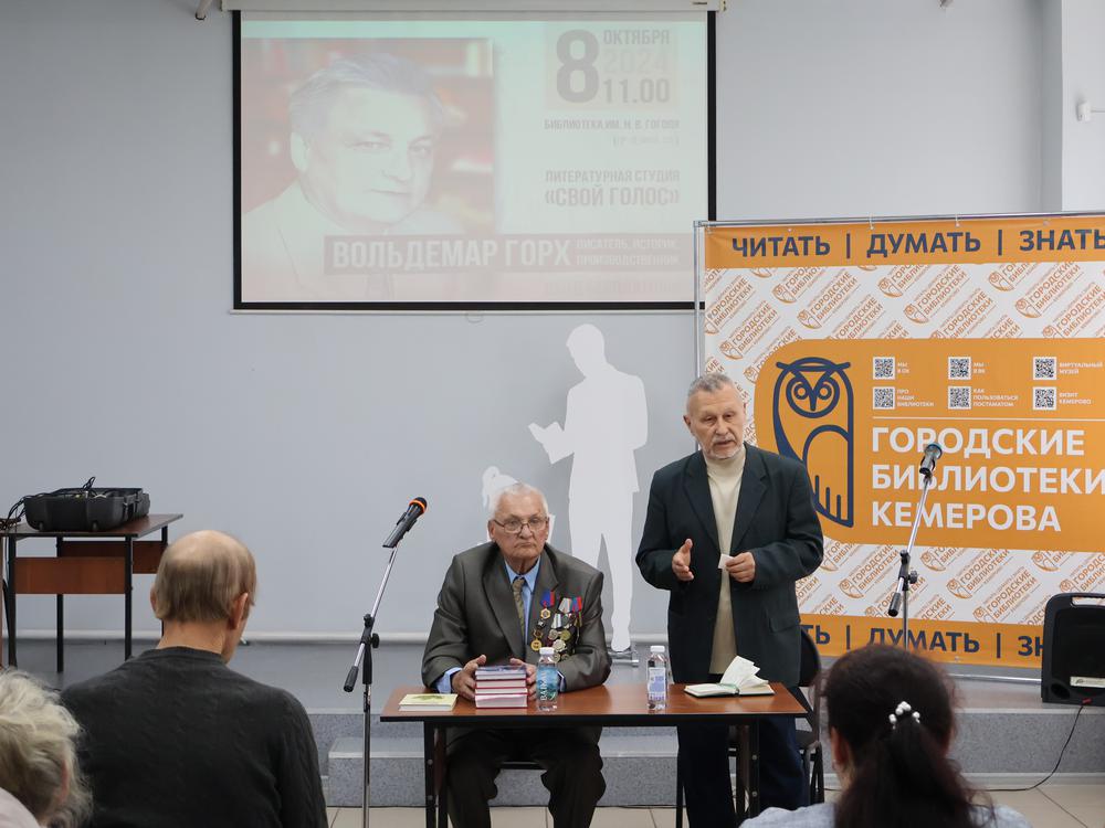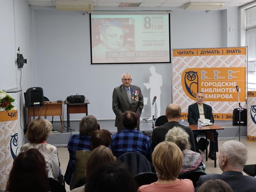 8 октября 2024 года в Библиотеке им. Н. В. Гоголя состоялось заседание литературной студии «Свой голос». Встреча прошла не в совсем обычном формате – участники студии и гости встречи поздравляли одного из старейших участников студии Вольдемара Горха с присвоением ему звания почётного гражданина Кемеровского муниципального округа. Вольдемар Александрович Горх более тридцати лет работал директором совхозов «Ягуновский», ОПХ «Новостройка», «Барачатский». Под руководством Вольдемара Александровича совхоз «Барачатский» неоднократно становился лидером среди сельскохозяйственных предприятий района. Он внёс свой личный вклад в развитие производства, внедрил современные технологии, в том числе цеховую систему ведения животноводства. Являясь руководителем Кемеровского сельскохозяйственного института и сельскохозяйственного техникума, Вольдемар Александрович вел работу по повышению профессионального образования работников сельского хозяйства района. Заслуженный работник сельского хозяйства, кандидат сельскохозяйственных наук. Академик ПАНИ (Петровская академия наук и искусств). В 2021 году Вольдемару Александровичу присвоено звание «Почётного гражданина Крапивинского округа» Вольдемару Александровичу, а в июле 2024 года – звание «Почётный гражданин Кемеровского муниципального округа». В. А. Горх – автор нескольких книг прозы и стихотворных сборников – «Перекресток судеб», «Живая память», «Произвол», «Звезды блестят в темноте», «Калейдоскоп», «Из памяти строка», крупного исторического романа «Сыны Отечества», о трагической судьбе сибирских казаков в годы гражданской войны, и других. На встрече звучали поздравления в адрес виновника торжества, а Библиотека им. Н. В. Гоголя присоединяется к многочисленным поздравлениям! 8 октября 2024 года в Библиотеке им. Н. В. Гоголя прошло необычное заседание литстудии «Свой голос» – поздравляли Вольдемара Горха с присвоением звания почетного гражданина Кемеровского округа. Вольдемар Александрович – легенда: директор совхозов, академик, автор книг. Вольдемар Александрович рассказал, как становился лидером среди сельскохозяйственных предприятий района, внёс свой личный вклад в развитие производства, внедрил современные технологии, вел работу по повышению профессионального образования работников сельского хозяйства района. Вольдемар Горх – еще и талантливый писатель. Он автор нескольких книг, среди которых «Перекресток судеб», «Сыны Отечества», и другие, где он описывает как исторические события, так и личные переживания.