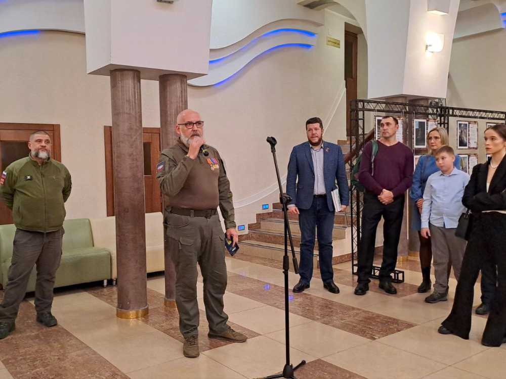 В рамках премьерного показа спектакля «Свои» в Театре для детей и молодежи состоялась встреча с Витом Дорофеевым, автором планшетной выставки стихов и картин с элементами дополненной реальности «СВОй вижу образ». Перед началом спектакля директор Театра для детей и молодёжи Григорий Забавин обратился к зрителям с приветственными словами и зачитал обращение от имени актеров и постановочной группы: «Мы бы хотели обратиться к каждому из вас лично и поблагодарить за то, что вы пришли на этот спектакль. Этот спектакль не о войне, а о людях, которые оказались в обстоятельствах войны. Этот спектакль – истории реальных людей, прошедших через испытания. Все они расскажут о судьбах, выборе, чувствах, мотивации, победах и страхах героев.» Затем слово взял кемеровский поэт, ветеран СВО Виталий Дорофеев (позывной – Тагар), заместитель председателя РОО «Кузбасский Союз ветеранов СВО», который представил выставку «СВОй вижу образ», организованную с 25 октября по 4 ноября в фойе театра. Экспозиция включает стихи Виталия Дорофеева о событиях СВО и картины художницы и волонтера СВО Марии Циколиной (позывной – Сова). Особенность выставки – элементы дополненной реальности, когда поэтические и художественные образы через экран смартфона оживают исполнением стихов артистами театра. Гостями премьерного показа были: председатель РОО «Кузбасский Союз ветеранов СВО» Алексей «Хазар» Савин с супругой Юлией, член Ассоциации ветеранов СВО Максим «Гатера» Демидов, заместитель председателя Совета по вопросам попечительства в социальной сфере Ирина Фёдоровна Фёдорова, руководитель филиала Государственного фонда поддержки участников Специальной военной операции «Защитники Отечества» по Кемеровской области-Кузбассу Лариса Владимировна Конышева, директор МАУК «МИБС» Лилия Александровна Смирнова. Среди первых зрителей спектакля были ученики школы №93. Они с большим интересом ознакомились с выставкой и попросили сделать общее фото с автором стихотворений Виталием Дорофеевым. Спектакль «Свои» – литературно-музыкальная постановка, посвящённая событиям специальной военной операции и героизму ее участников. Основой для постановки послужили книги «Жизнь за други своя» и «Нет уз святее товарищества», составителями которых являются Захар Прилепин, Олег Демидов и Алексей Колобродов. В центре сюжета – личные истории ветеранов СВО и их семей. Режиссерами спектакля выступили актеры театра для детей и молодежи Владимир Олейников и Нина Степанова. Над созданием постановки трудились несколько месяцев, и теперь она доступна широкой публике. Подобные творческие события играют важную роль в современном обществе, так как помогают объединить людей вокруг общей цели – поддержки и признания заслуг тех, кто рискует своей жизнью ради безопасности страны. Они способствуют укреплению патриотического духа, воспитанию уважения к героям нашего времени и сохранению исторической памяти. Такие проекты позволяют зрителям глубже понять переживания и опыт участников СВО, формируют у них чувство сопричастности и ответственности за будущее своей страны. Выставки и спектакли, подобные «СВОй вижу образ» и «Свои» вдохновляют на добрые дела и поддержку друг друга, дают возможность обществу выразить свою благодарность и уважение к тем, кто, рискуя жизнью, защищает с