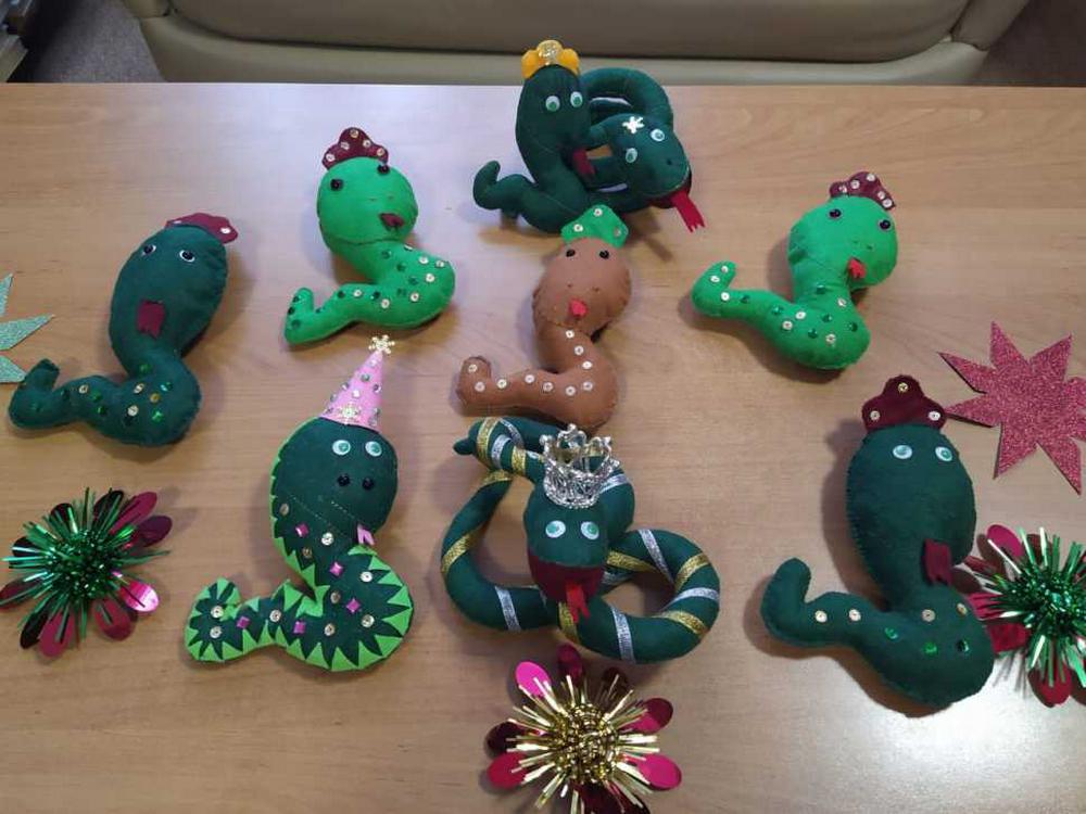 Новый год – время волшебства и творчества! А новогодние мастер-классы в библиотеке – прекрасный способ подготовиться к празднику, украсить дом и порадовать себя и близких уникальными украшениями. 10 декабря в Библиотеке им. Г. Е. Юрова для читателей был подготовлен и проведен мастер-класс по изготовлению символа 2025 года – змейки из фетра. Этот универсальный материал подходит даже тем, кто далек от мира творчества, работать с ним легко и приятно. Читатели узнали, какой использовать шов, чтобы поделка выглядела красивее и аккуратнее. А чтобы змейка гнулась внутрь поместили проволоку. Затем украсили свои поделки – пайетками, бисером, тканью. Получились змейки привлекательными, яркими, смотрятся очень мило, трогательно и в то же время необычно. А также они смогут удивить и порадовать тех, кто важен и дорог.