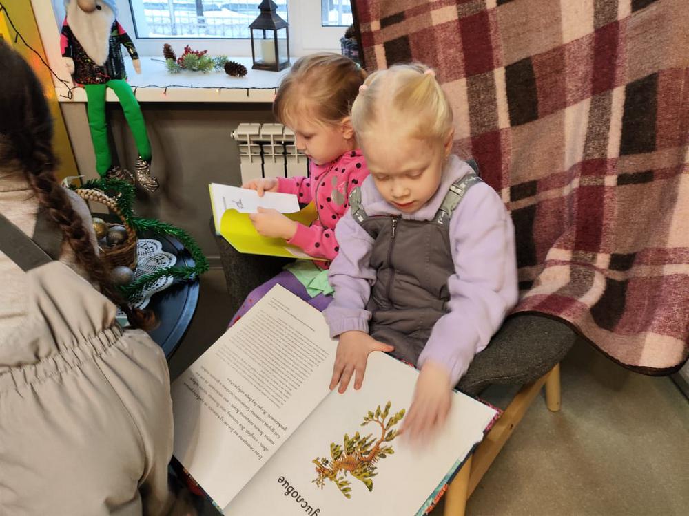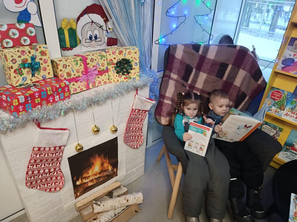Расположившись в уютной новогодней фотозоне библиотеки зала тихого чтения, смогли погреться у камина, полистать зимнюю книжную подборку. В зале детства дошколята пришли в восторг от книжного разнообразия – яркие книги со стихами и сказками, книги о природе, энциклопедии и журналы. Такое изобилие никого не оставило равнодушным.