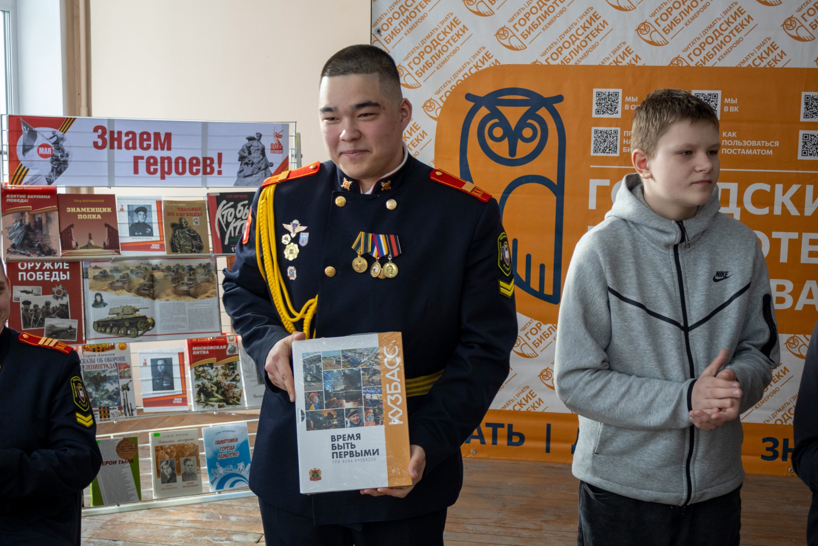 80-летию Великой Победы был посвящён старт традиционной библиотечной акции «Читаем книги о войне». Благодаря акции, которая ежегодно стартует в день кадетского приёма, горожане помнят и знают о событиях Великой Отечественной войны и чтят её героев. Для гостей в рамках акции провели викторину, посвящённую военным событиям, предварявшим Победу. Победителем стал кадет Кирилл Рысев. Он получил памятный приз – книгу «Время первых».