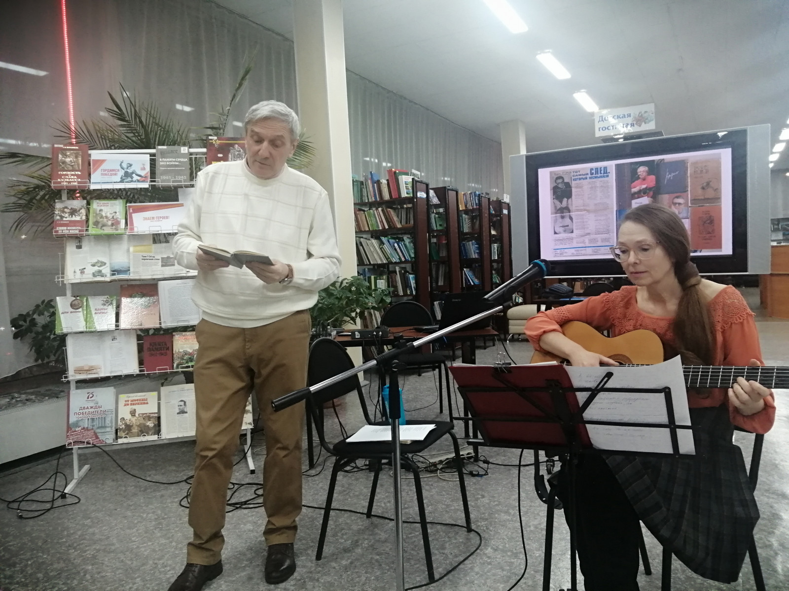 13 февраля 2025 года в Библиотеке им. Н.В. Гоголя состоялась очередная встреча с автором и исполнителем Иваном Мазаевым. На этот раз участники встречи вспомнили произведения таких авторов как: Вадим Егоров, Татьяна и Сергей Никитины, Валерий Канер, Леонид Семаков, Виктор Луферов. Авторская песня, как никакая другая, способствует глубокой внутренней работе человеческой души и сердца, и в этом её главная особенность. Зрители хорошо приняли выступление Ивана Мазаева, подпевали знакомым песням и внимательно слушали те, которые являются малоизвестными. Встреча прошла очень интересно и по-домашнему тепло. Следите за нашими анонсами!