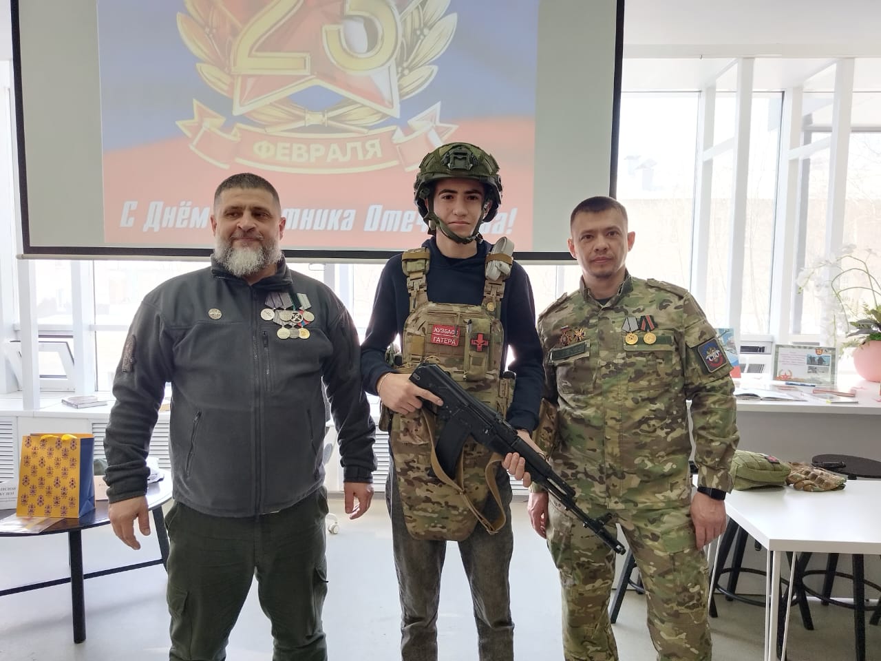 Почетными гостями встречи стали: Демидов Максим (помощник председателя Ассоциации ветеранов СВО по Кемеровской области –Кузбассу) и Кончилов Владимир (член Ассоциации ветеранов СВО по Кемеровской области Кузбассу).