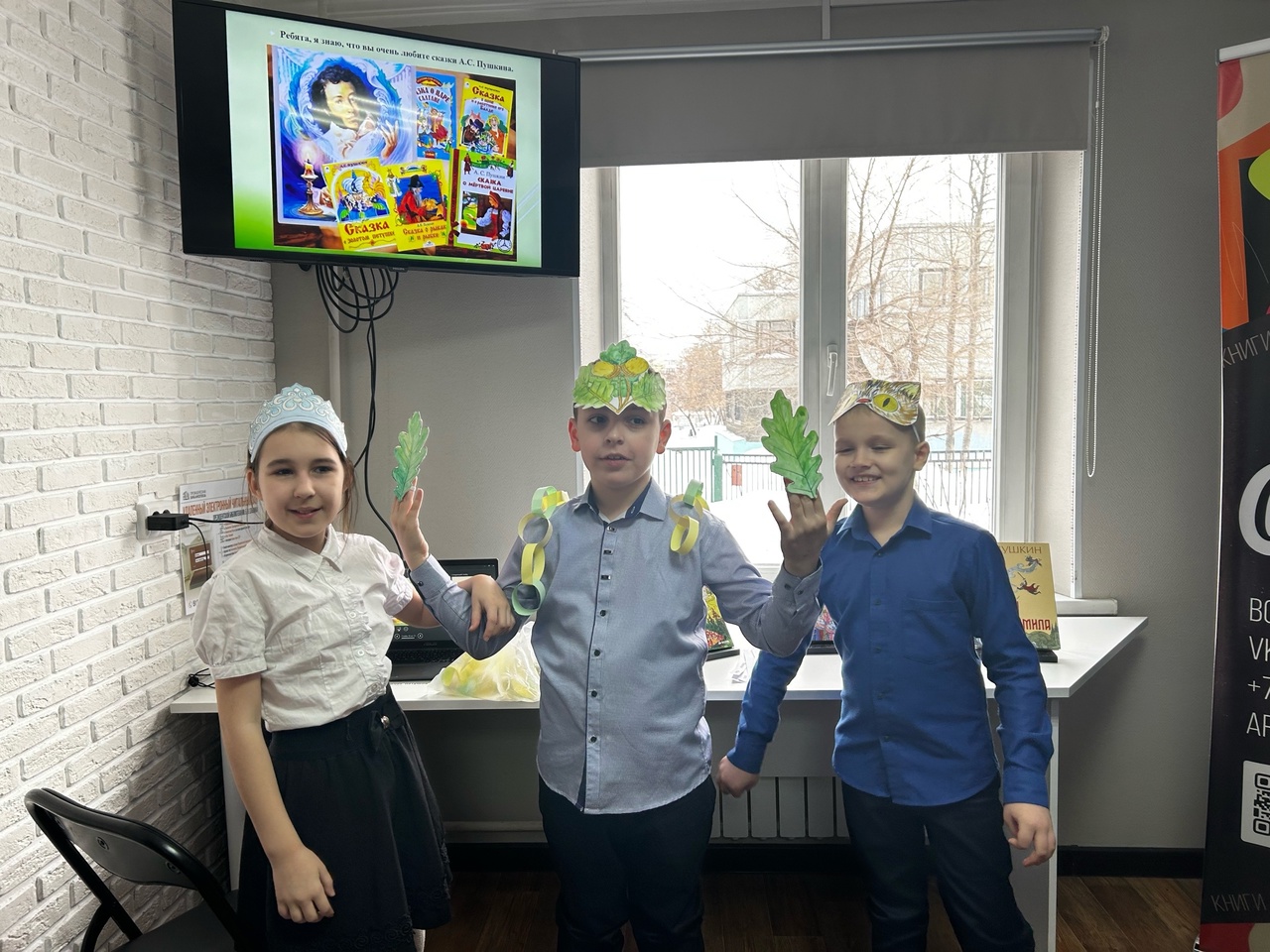 Ярким завершением литературного часа стало театрализованное представлению по стихотворению «У лукоморья дуб зелёный.»! Ребята перевоплотились в сказочных героев при помощи авторских масок.